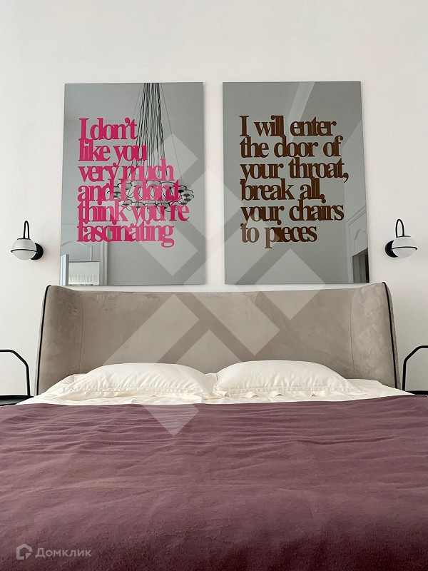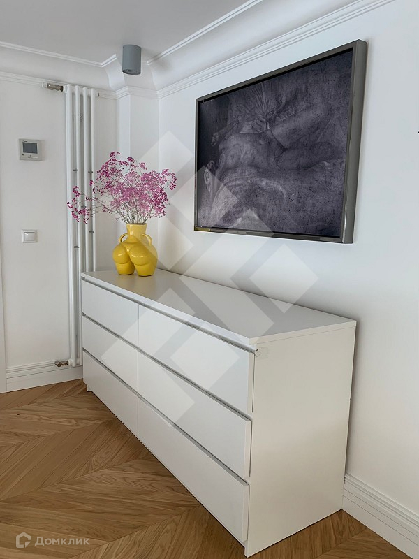 Квартира полностью укомплектована мебелью, также в интерьере представлены предметы современного искусства от известных авторов.