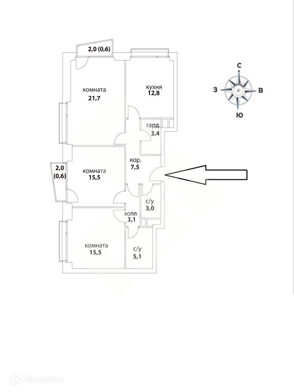 ·    Холл, кухня, 3 спальни, 2 с/у, один с возможностью установить ванну.