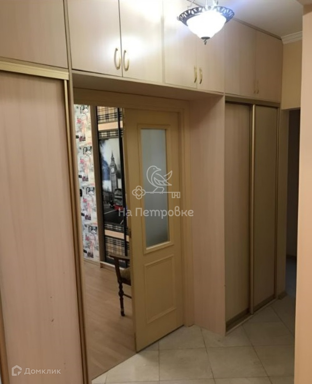 В коридоре огромное количество встроенных шкафов. Окна на две стороны.