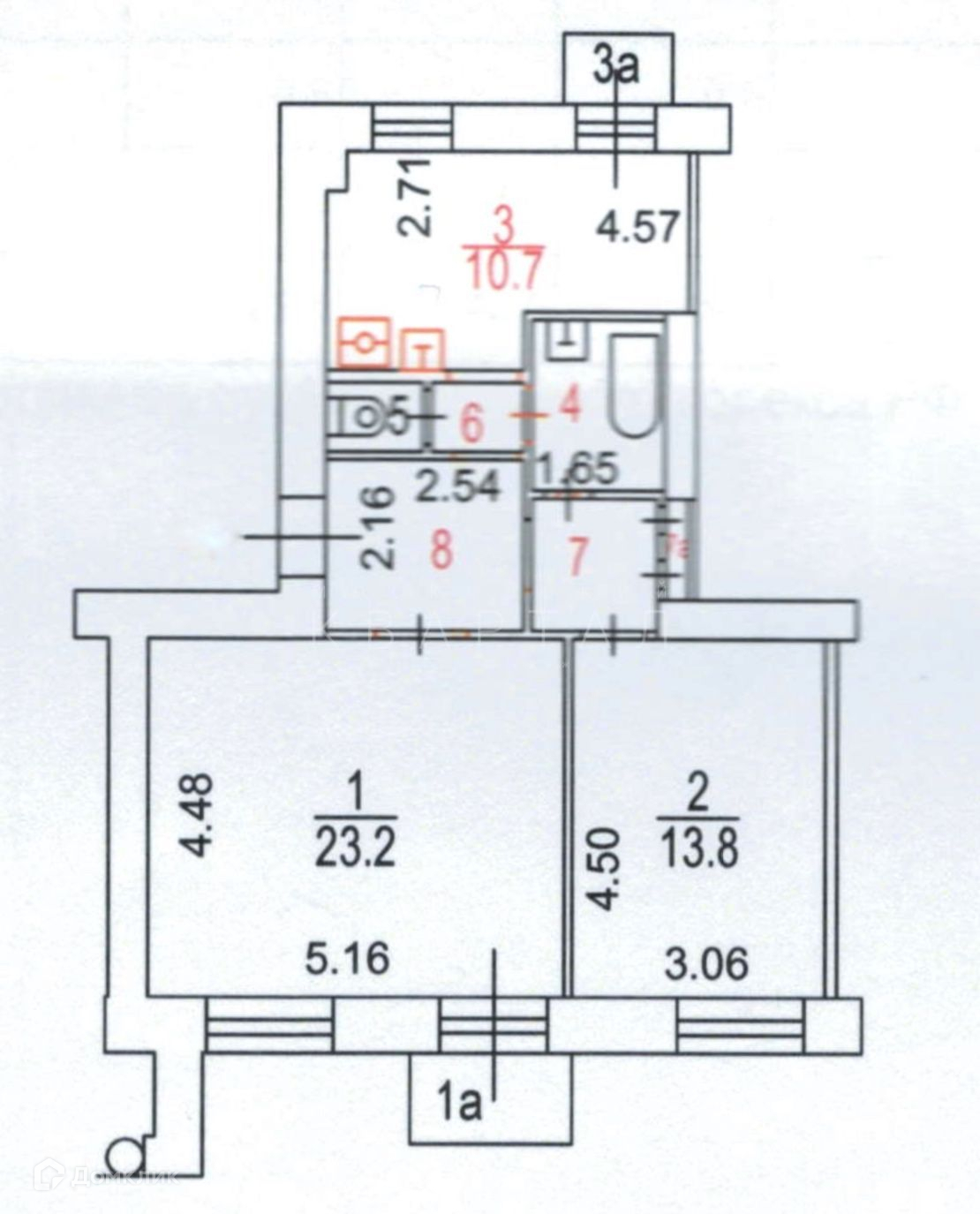 Общая площадь 62.3 м2