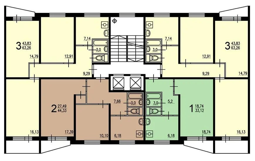 Общая площадь 44.33 м2