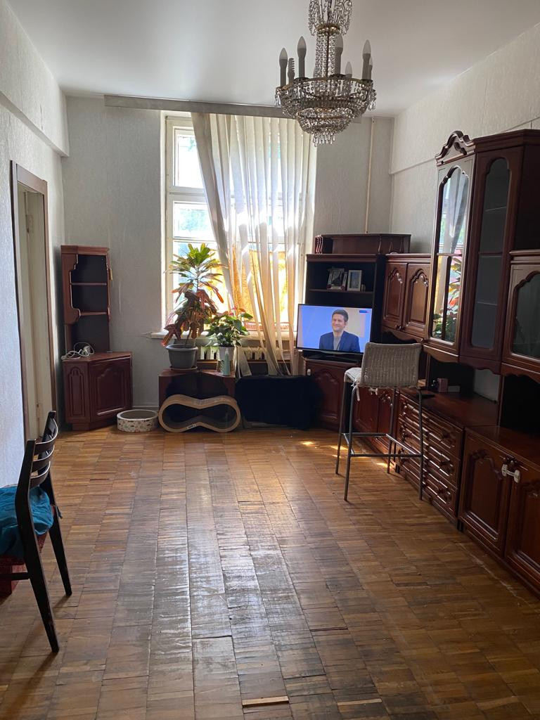 Сталинский кирпичный дом, надёжные массивные стены, отличные тепло- и звукоизоляция. Удобная планировка, высокие трехметровые потолки, окна выходят на две стороны дома во двор.