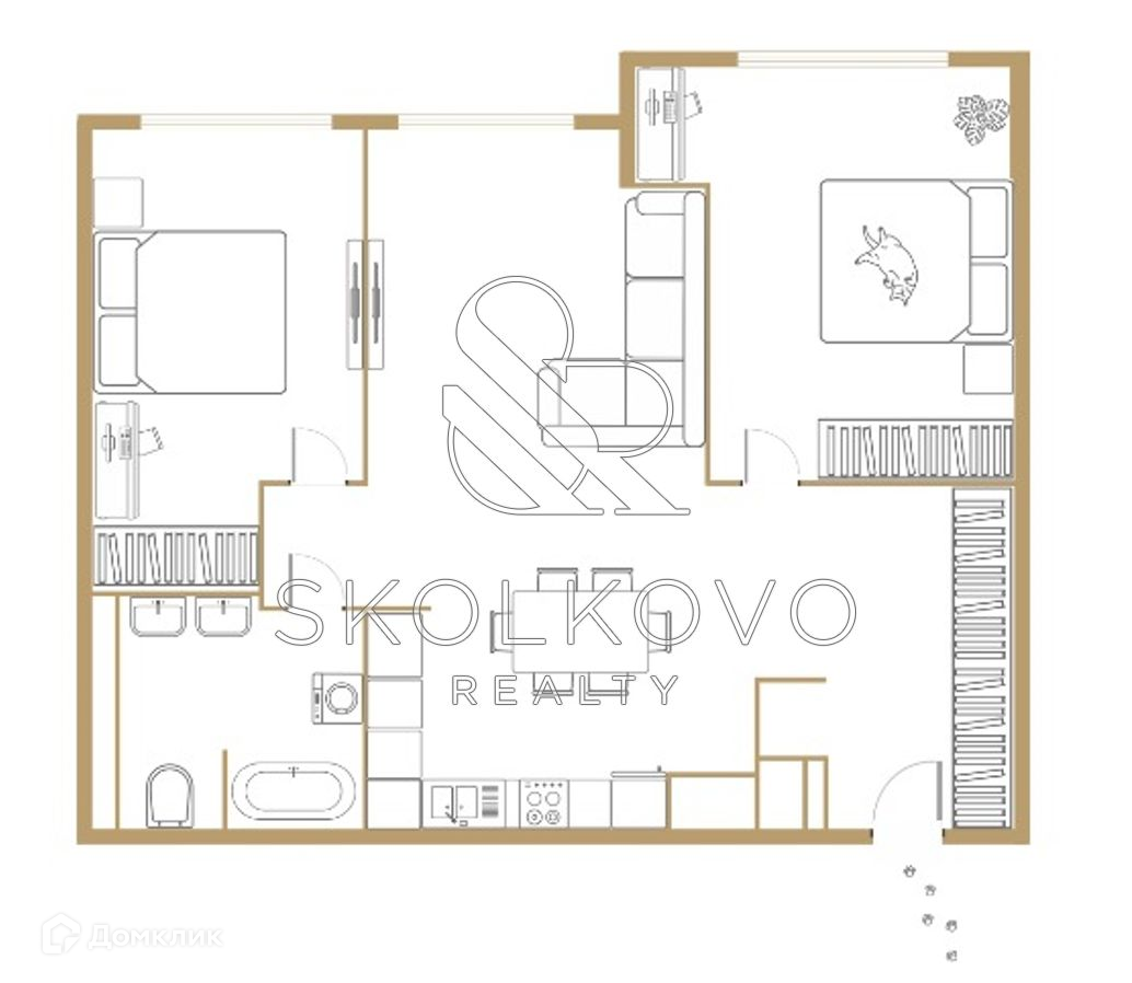 В настоящий момент квартира укомплектовывается мебелью и бытовой техникой ведущих брендов. Указана стоимость квартиры "под ключ".