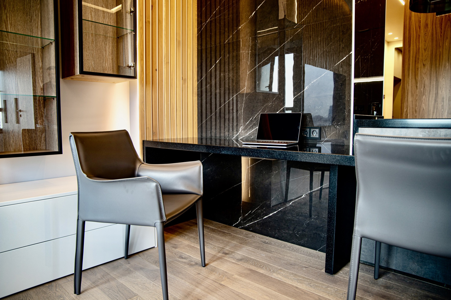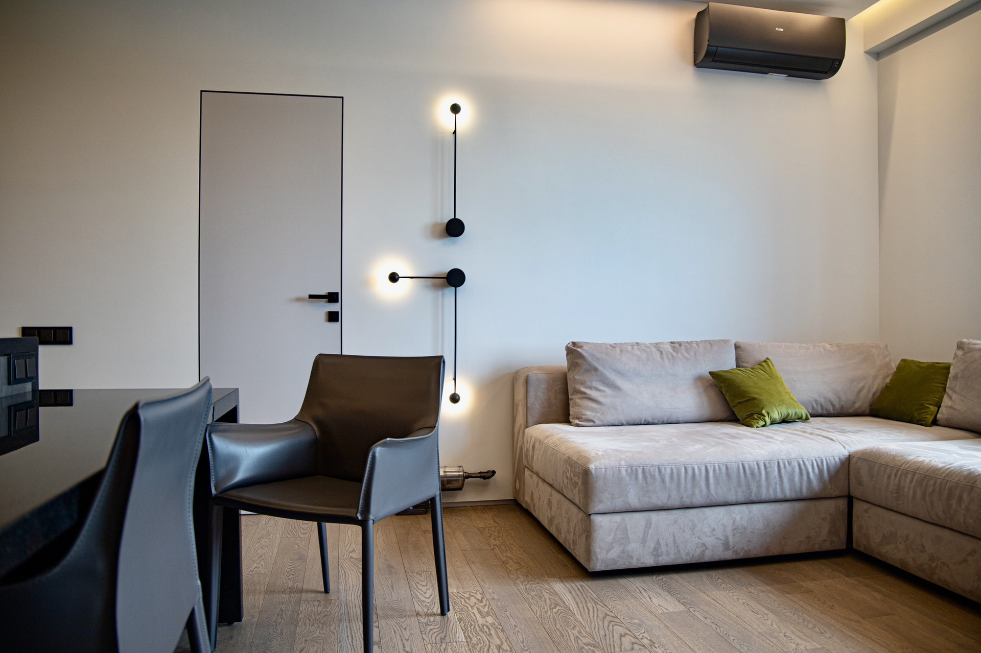 Различные части апартаментов разделены скрытыми дверями.