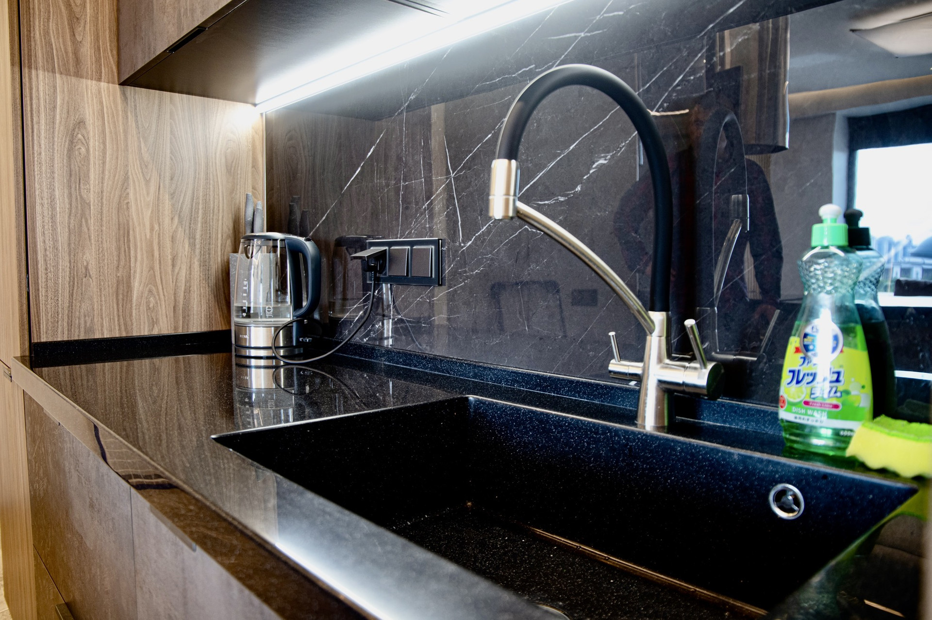 В квартире установлена автоматическая система защиты от протечек, а также водонагреватель на случай отключения горячей воды.