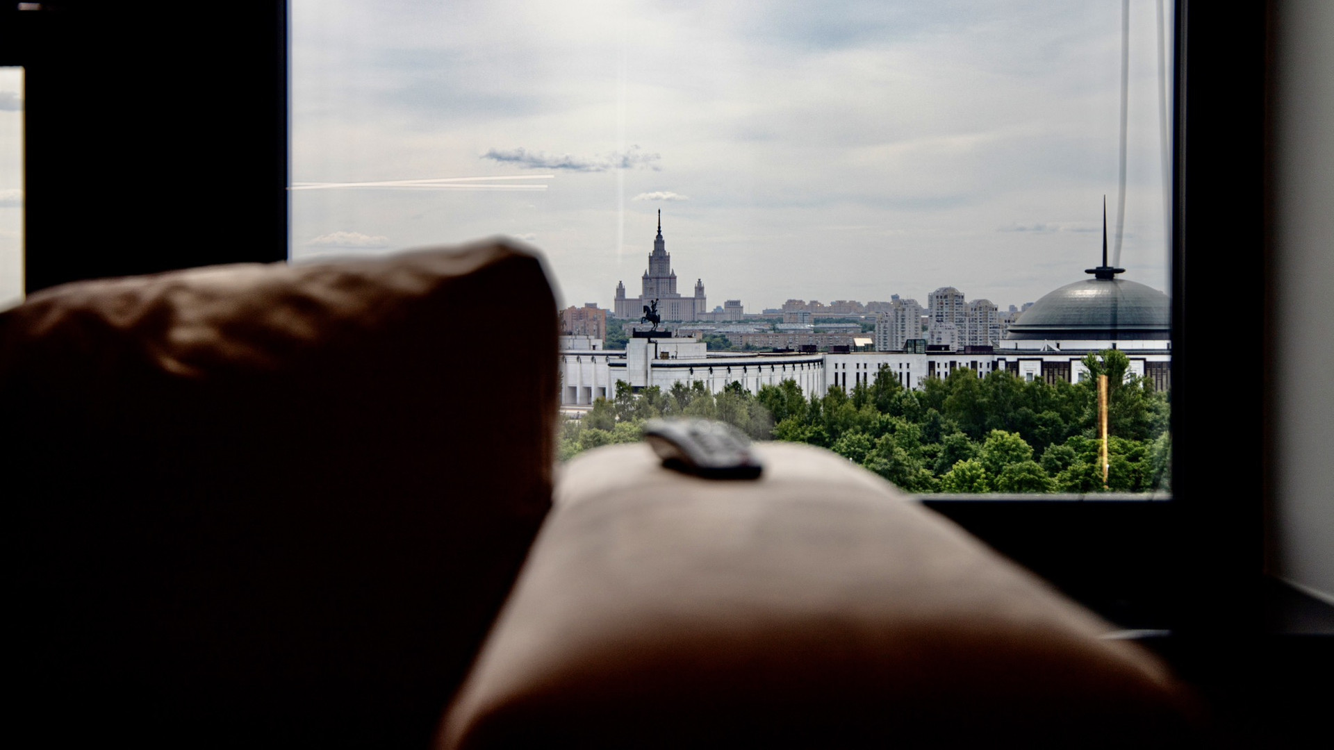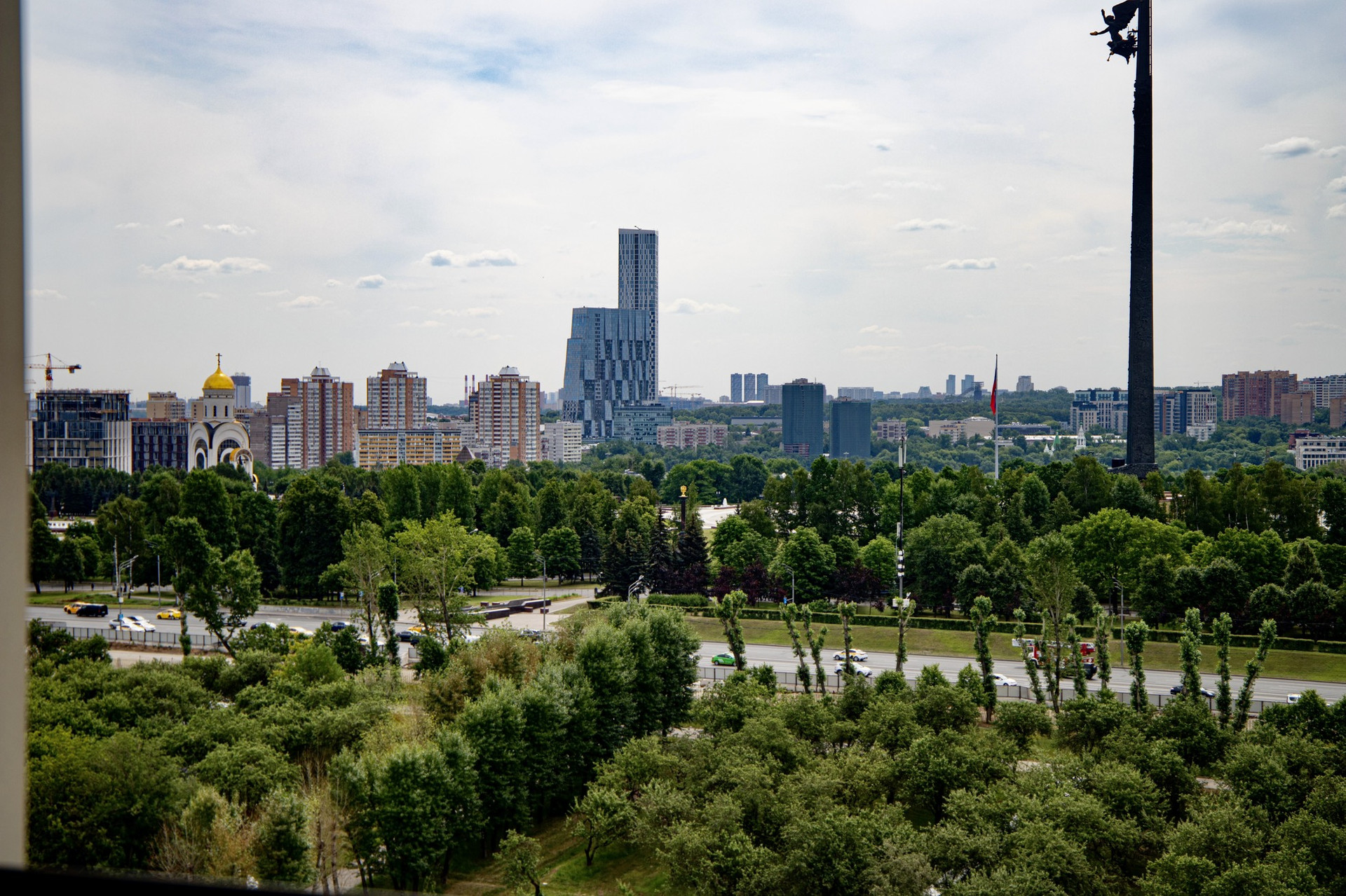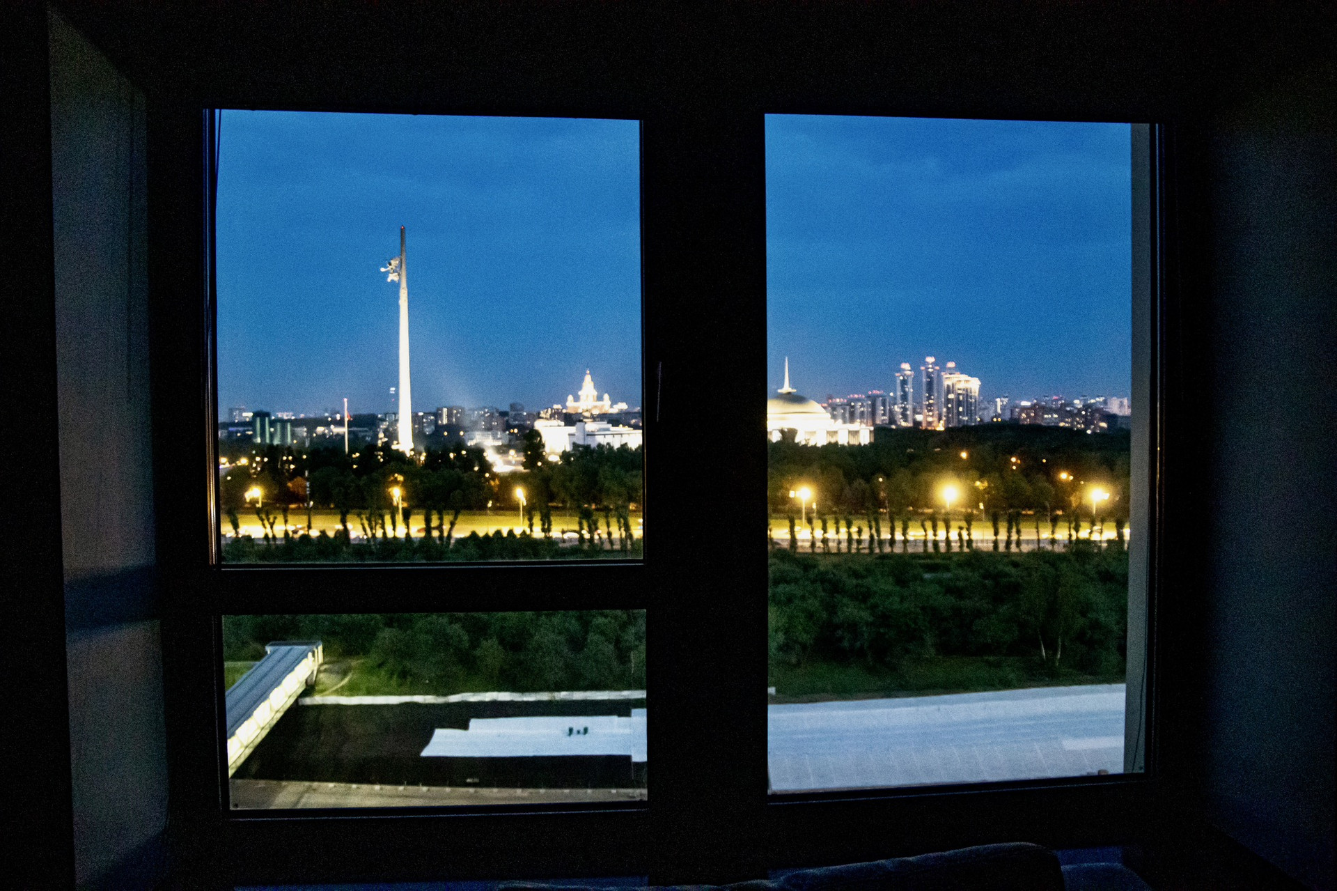 В панорамные окна открывается фантастический вид на Поклонную гору и главное здание МГУ, а в дни государственных и городских праздников лучшего места для просмотра салюта просто не найти.