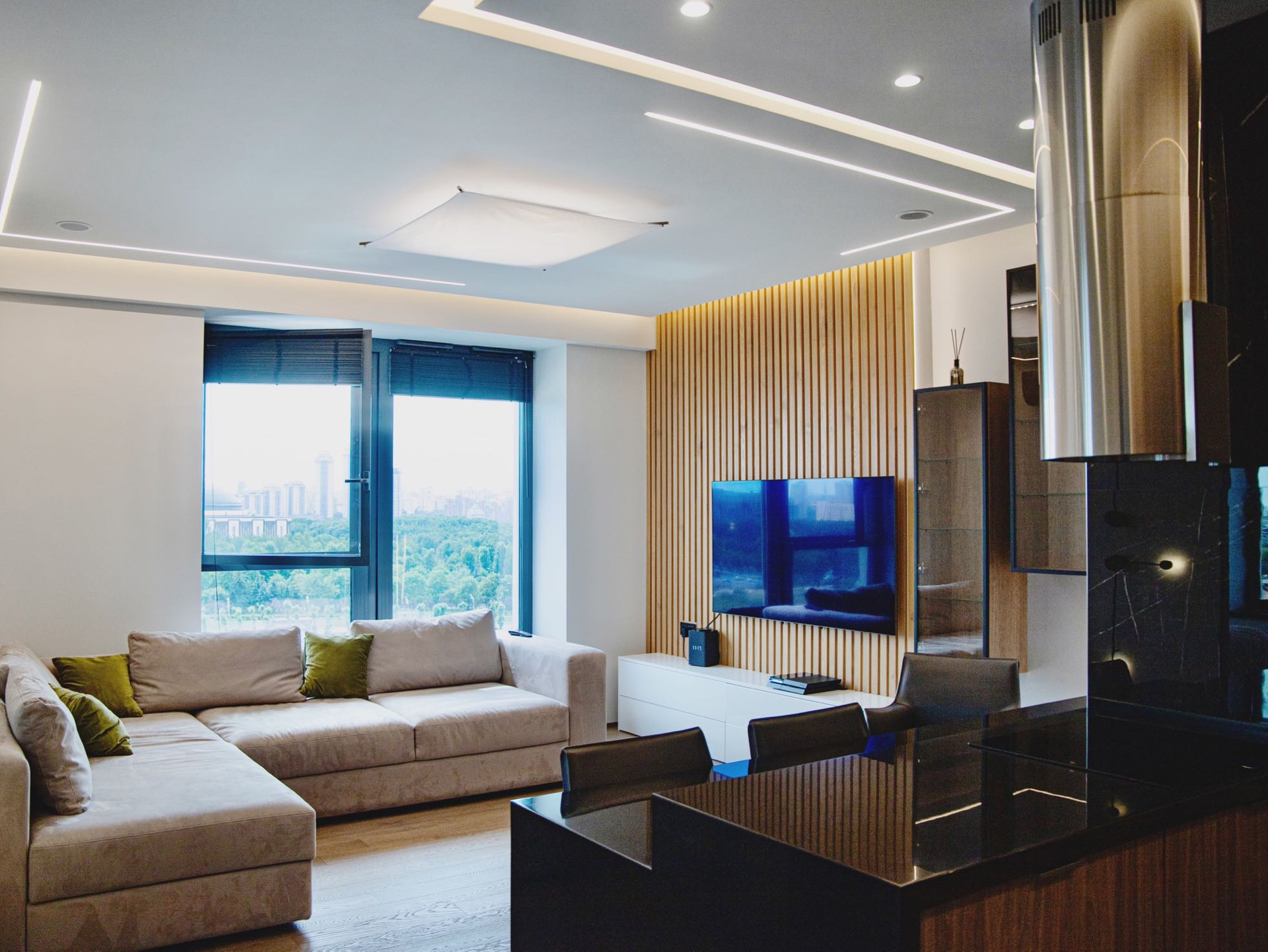 Кухня-гостиная идеально подходит как для приема гостей, так и для повседневного отдыха.