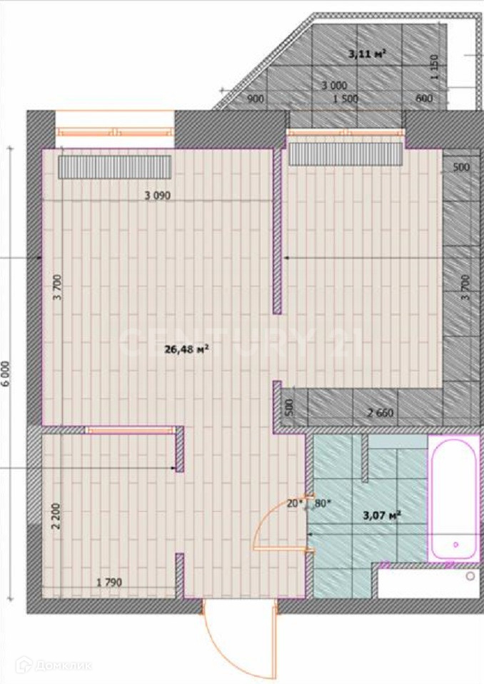Балкон, лоджия 1 балкон