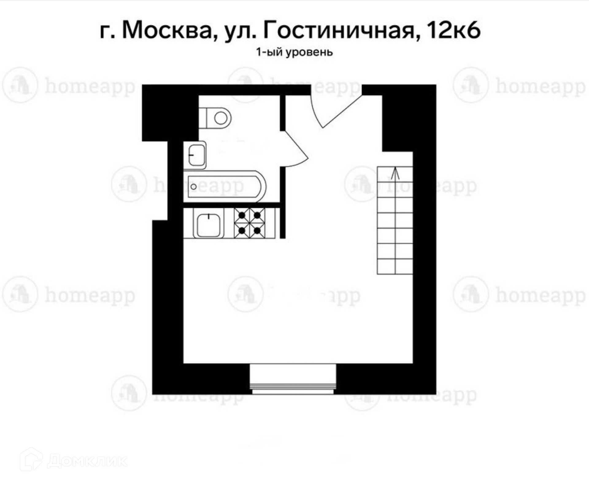 Квартира студия, 24.5 м2, этаж 1 / 5, на продажу в Москве, Гостиничная улица, 12к6