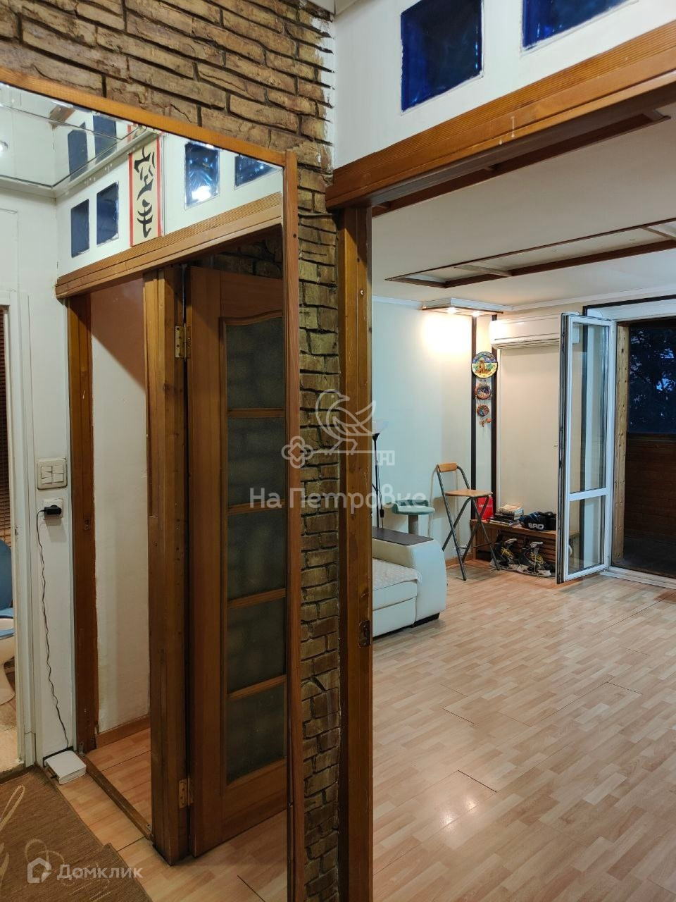 Огромная лоджия из комнаты в кухню, кондиционер.