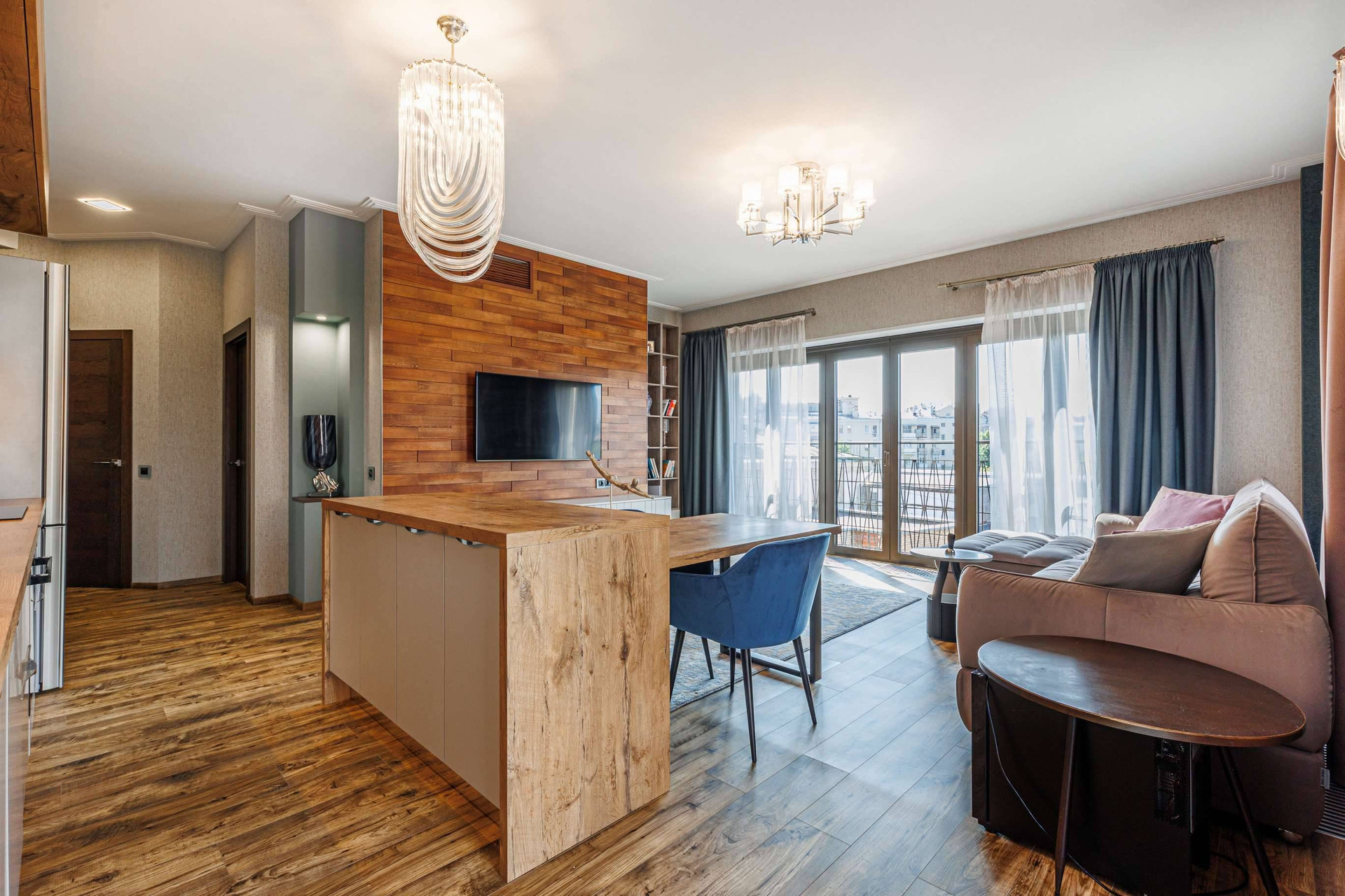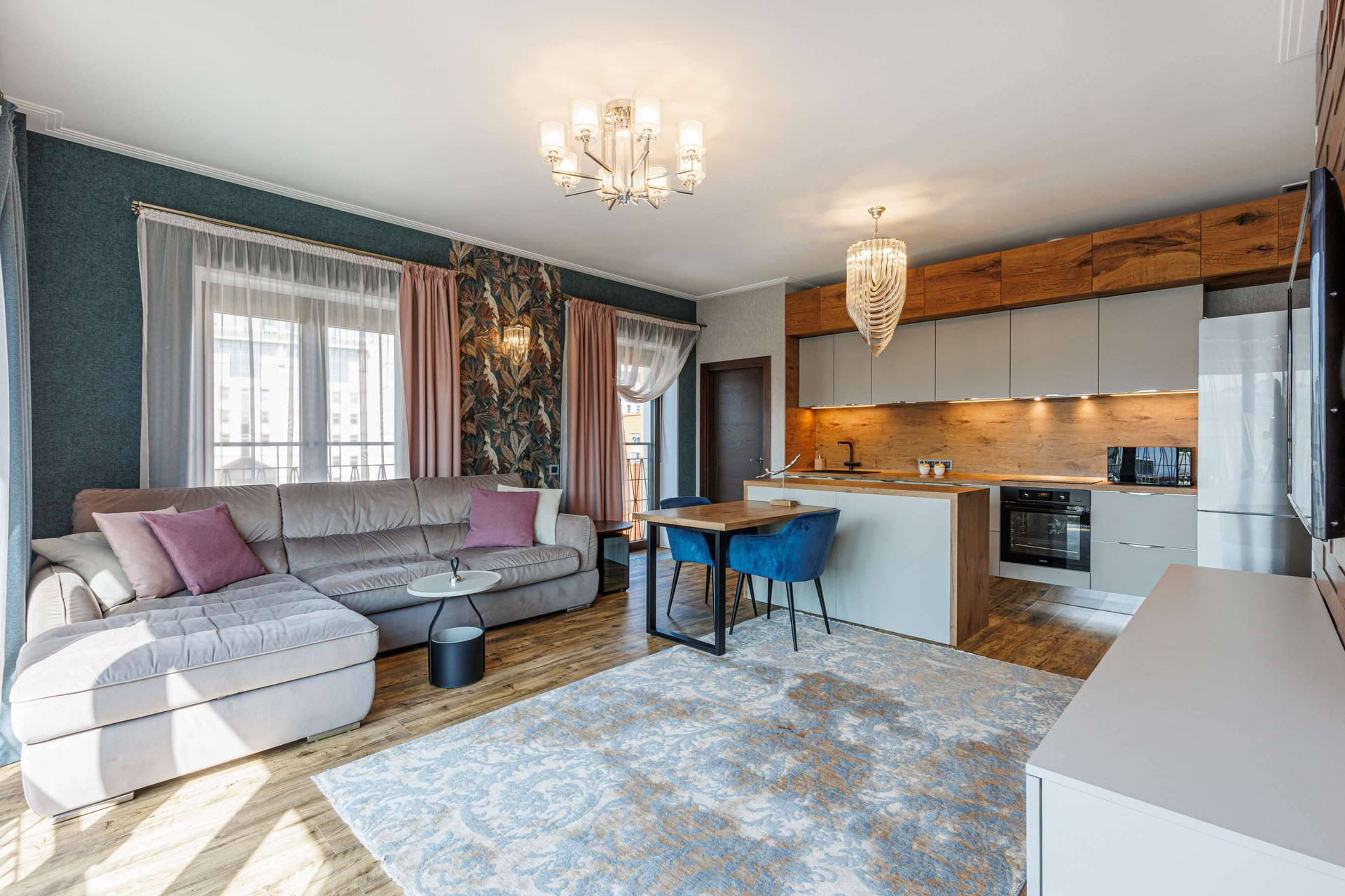 просторная кухня-гостиная, две спальни,