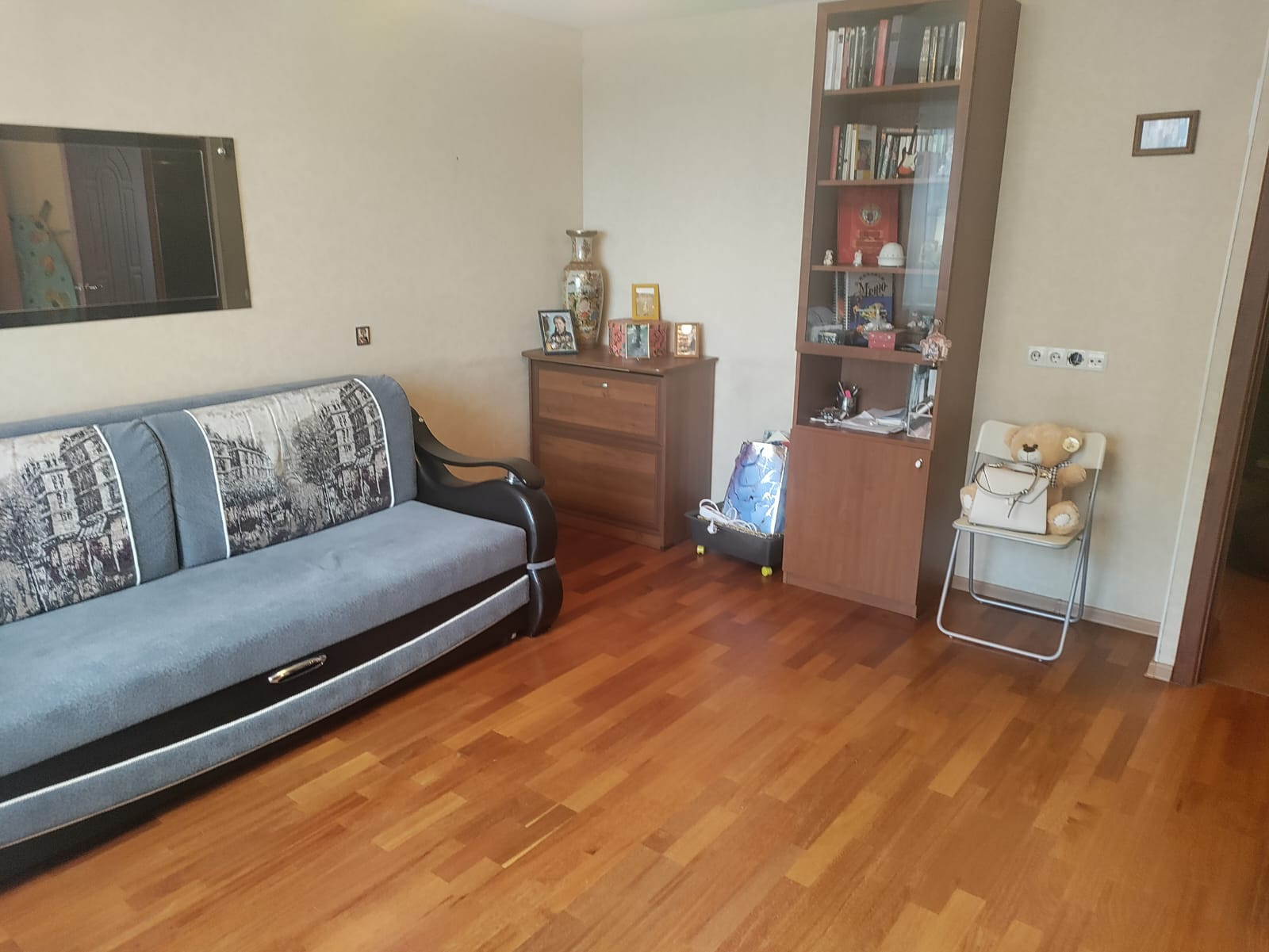 Состояние отличное, остается хорошая встроенная кухня с качественной бытовой техникой, встроенные шкафы, другая мебель по договоренности- можно сразу заезжать и жить, не вкладываясь в ремонт.