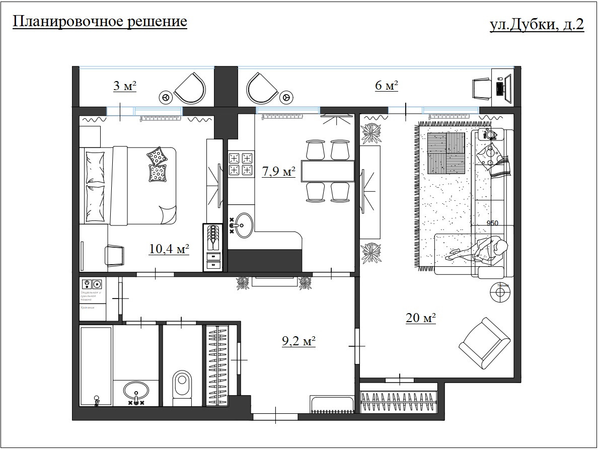 - Две изолированные комнаты 20 м² и 10,4 м²;