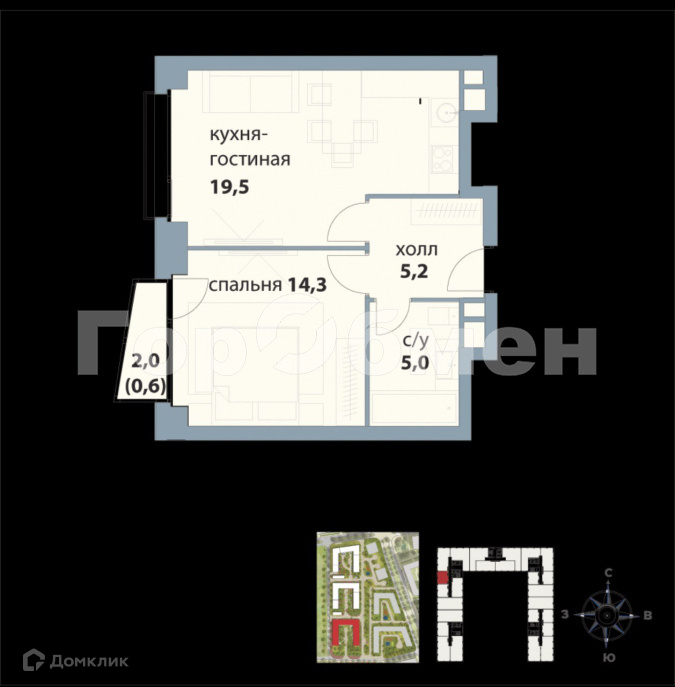 Количество комнат 2