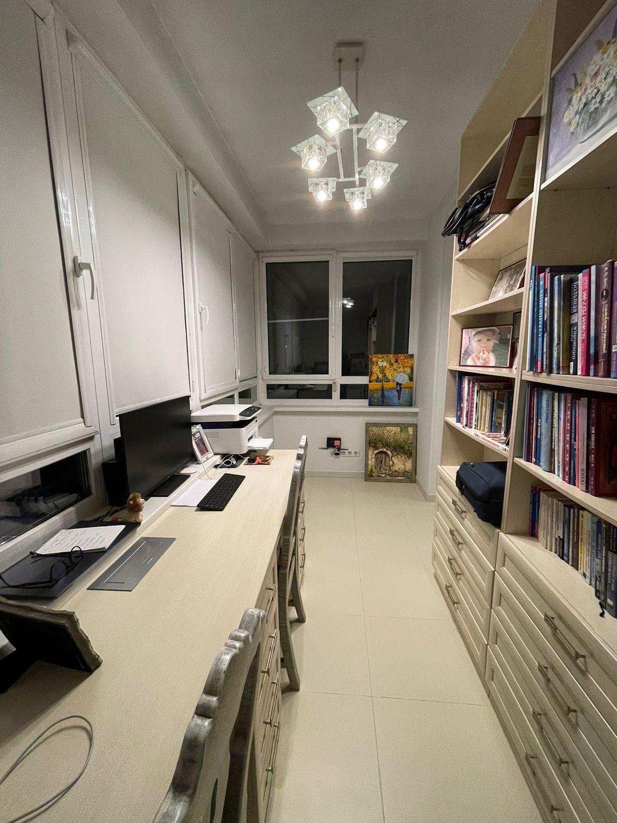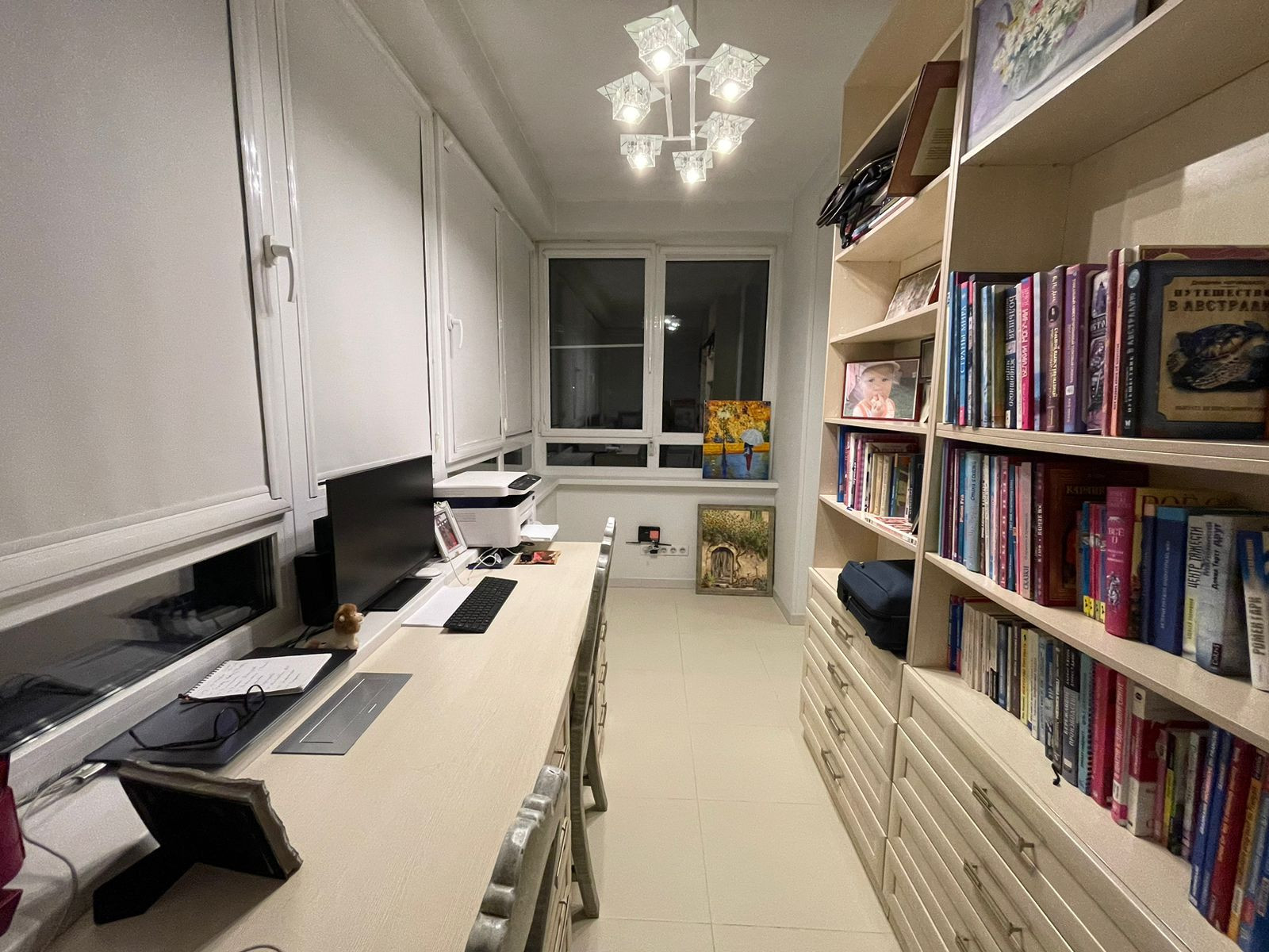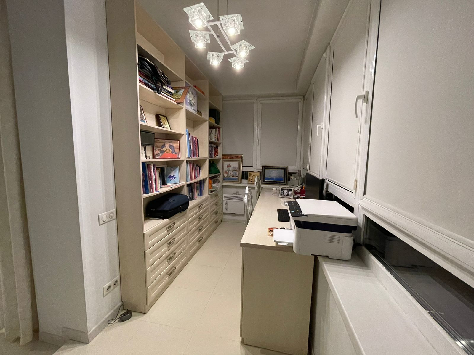 Планировка: большая кухня-гостиная, две изолированные спальни (одна из спален с большой гардеробной), два санузла (ванная+душ и туалет с постирочной), утепленная лоджия/кабинет, подсобка рядом с кухней для хранения бытовых вещей.