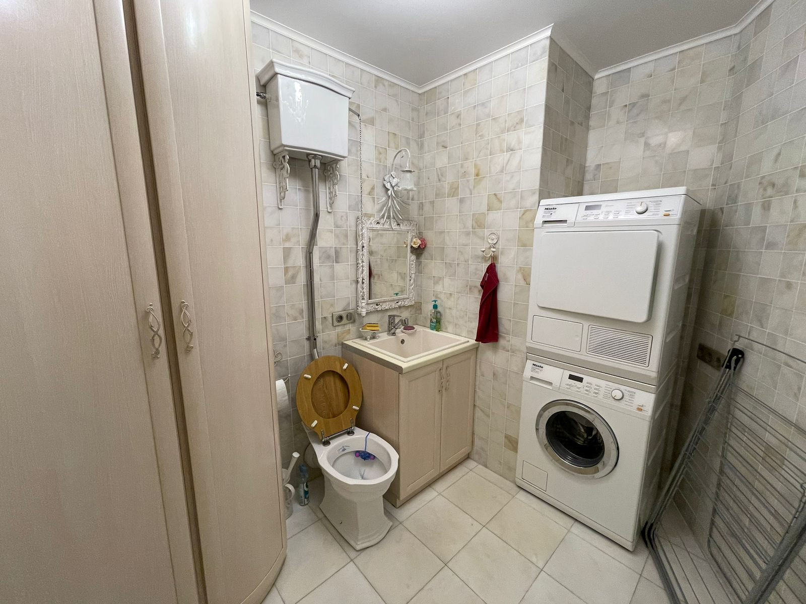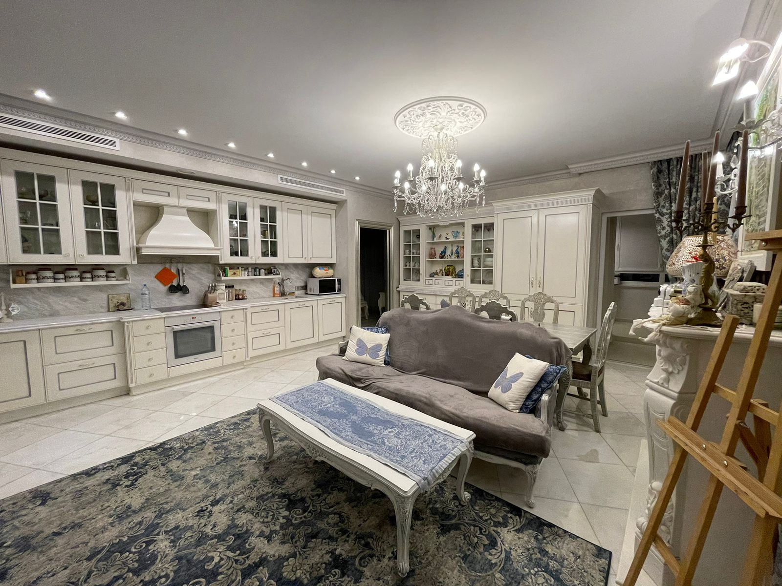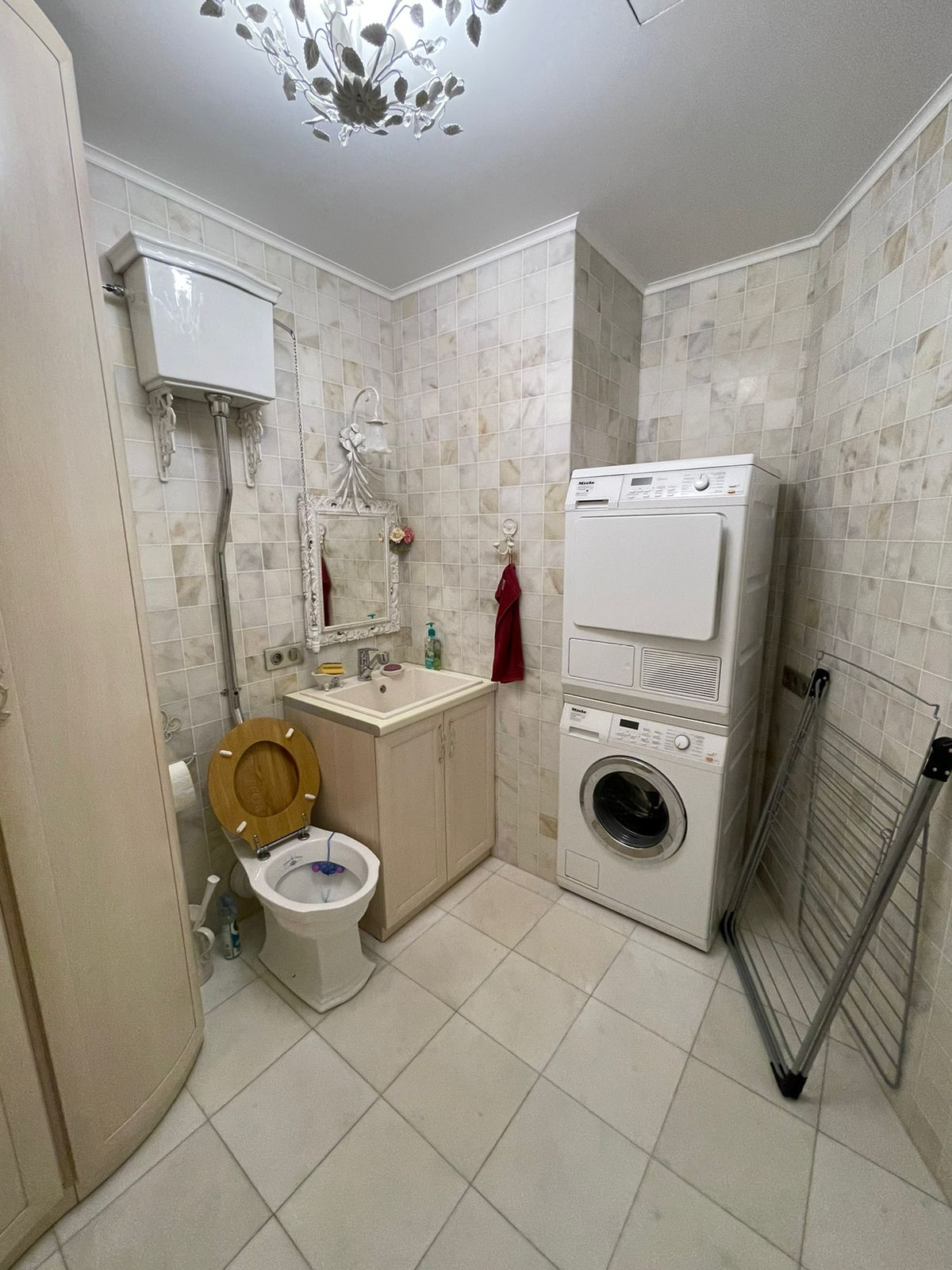 В квартире установлена потолочная система кондиционирования и вентиляции Daikin, теплые полы. Посудомоечная машина, варочная панель, духовка, стиральная машина, сушильная машина всё фирмы Miele. Домашний кинотеатр Hi-Fi.