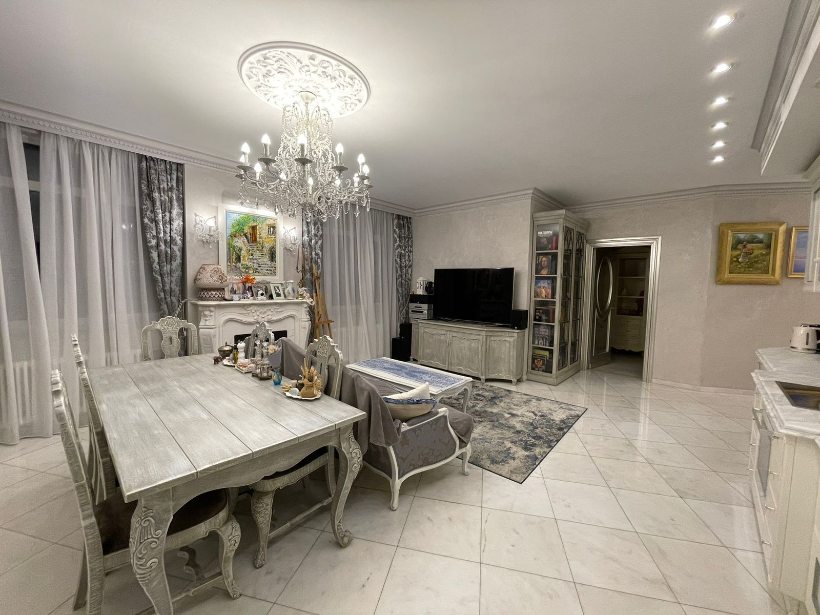 В детской отдельный ТВ.В гостиной электро-камин. Отделка с/у мрамор и травертин. Сантехника Devon&Devon Франция. Прихожая и гостиная пол мрамор, в спальнях пол - дубовая доска.