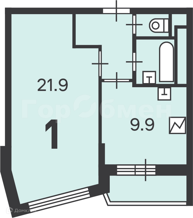 Жилая площадь 21.9 м2