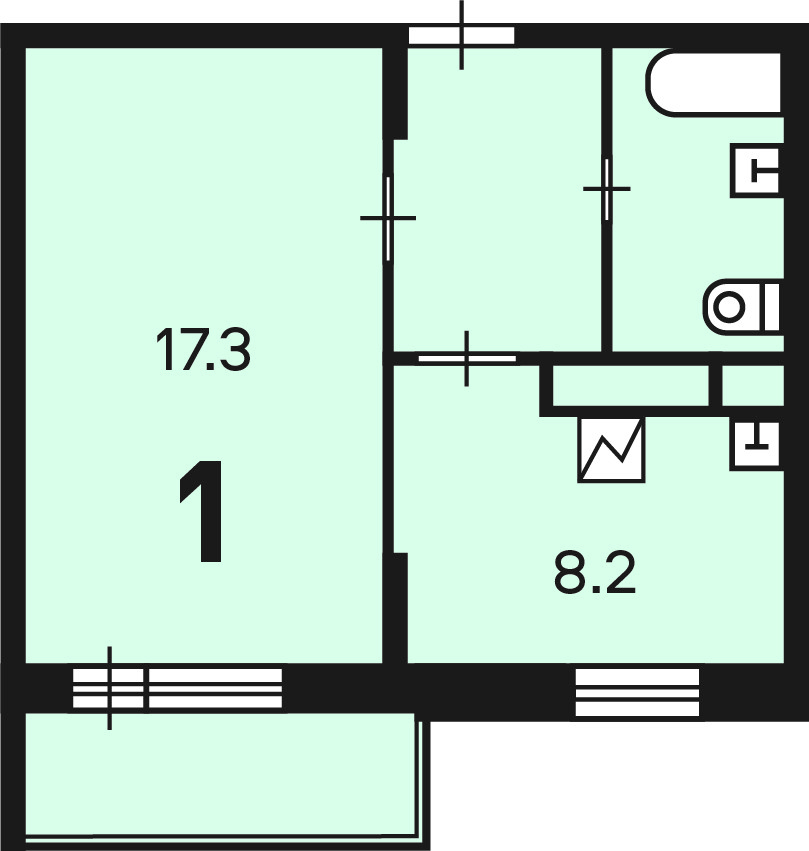 Жилая площадь 17.3 м2