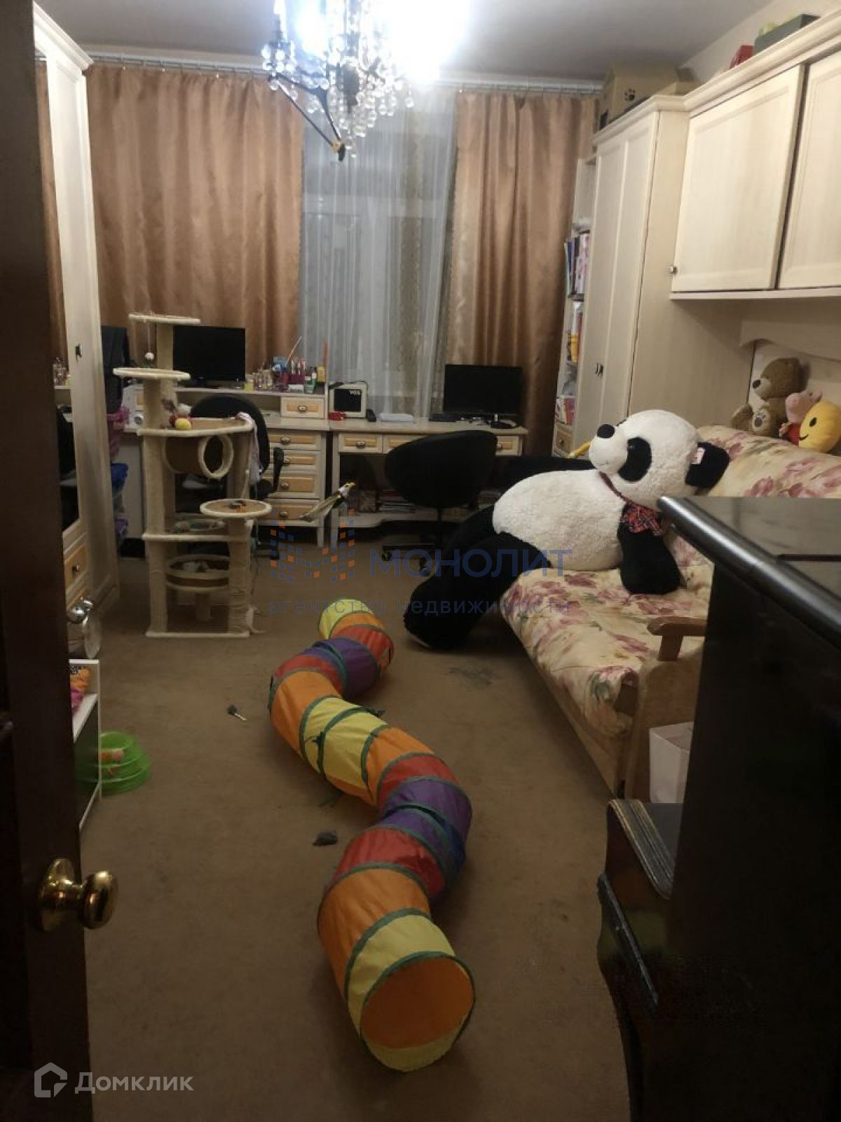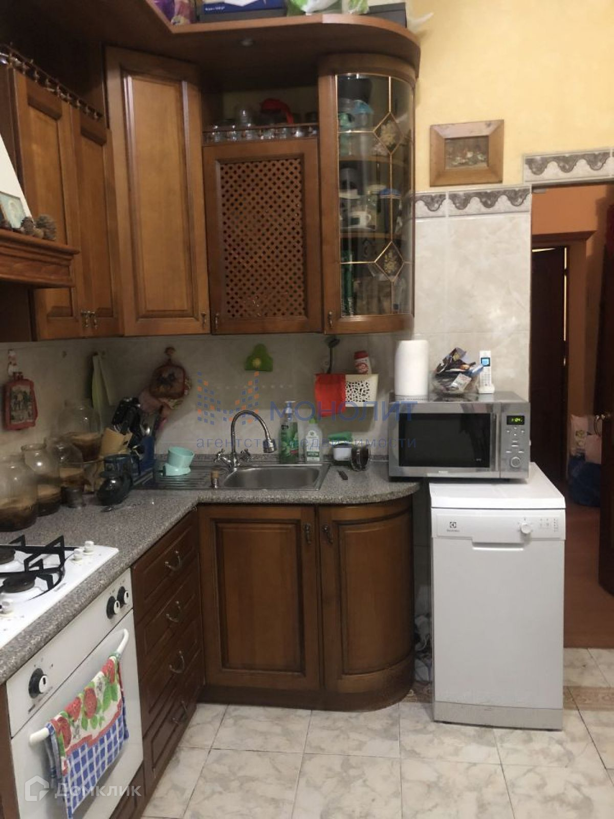 Квартира укомплектована мебелью и техникой.