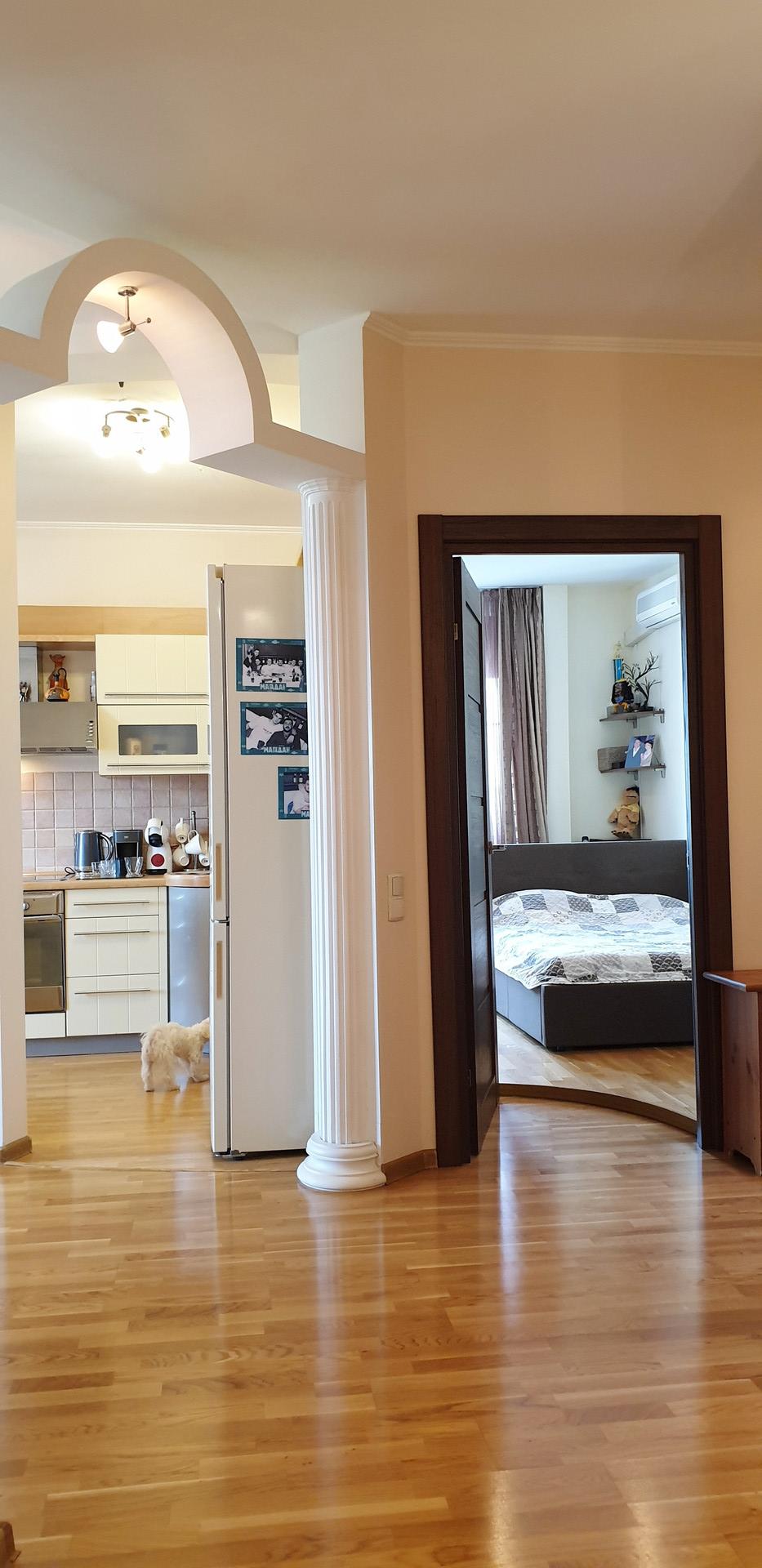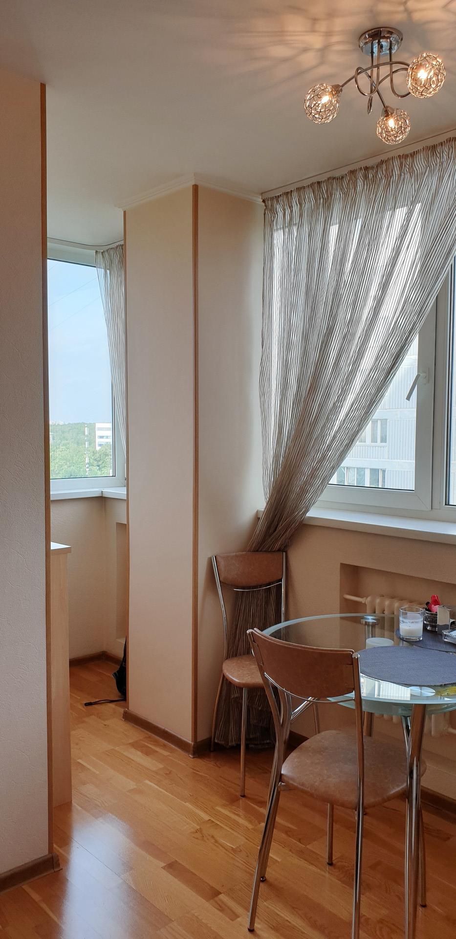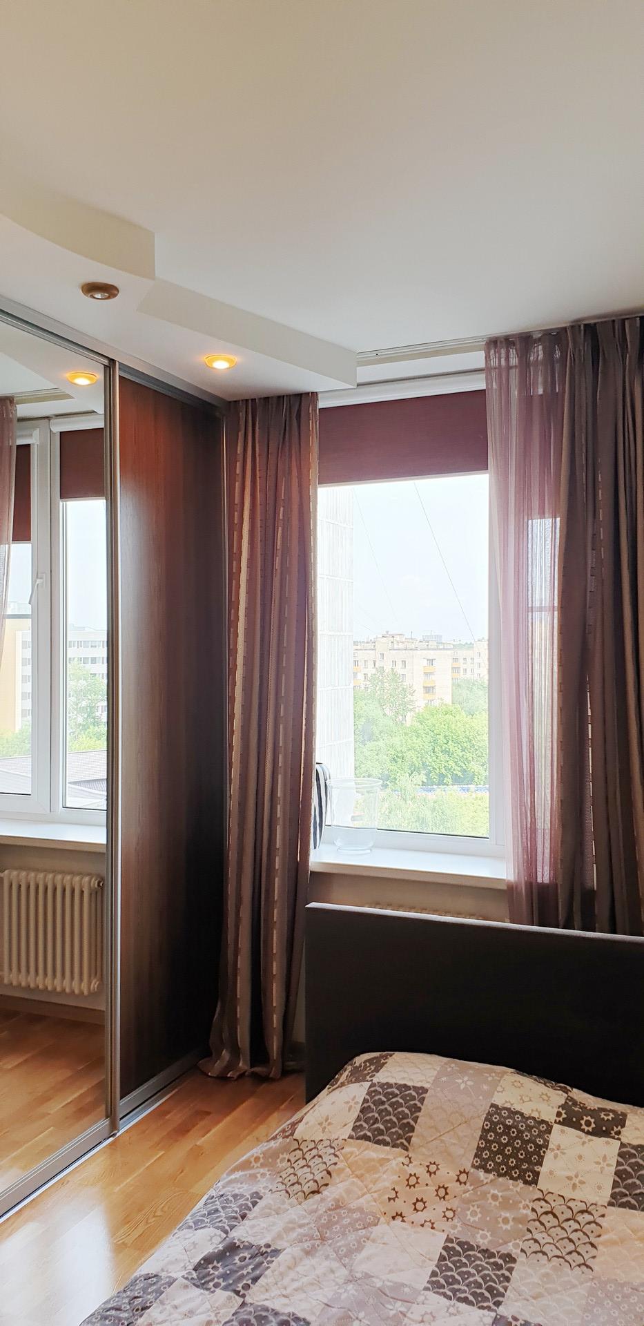 Ул. Космонавта Волкова, д. 29, корпус 1. 9 этаж 16-этажного монолитно-кирпичного дома 1998 года постройки. Общая площадь 90 квм, жилая 48 квм,  три комнаты  изолированные, кухня-гостиная 30 квм, потолки 2.9 м.  Санузел совмещенный. Постирочная. В квартире сделан дорогой ремонт. Встроенная кухня, техника, мебель, кондиционеры – остаются. Толстые стены (толщина 40 см в 2 красных кирпича + прослойка). 2 лифта. Консьерж. Приличные соседи.  Панорамный вид на Москву из всех окон (Восток, Юго-восток, в сторону от дорог). Дом находится в тихом зеленом дворе. Рядом вся инфраструктура. Во дворе английская школа. Свободная продажа. Приватизация 2002г. 3 взрослых собственника.