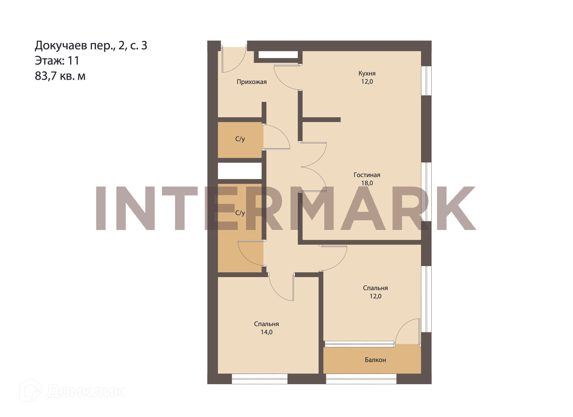 Общая площадь 83.7 м2
