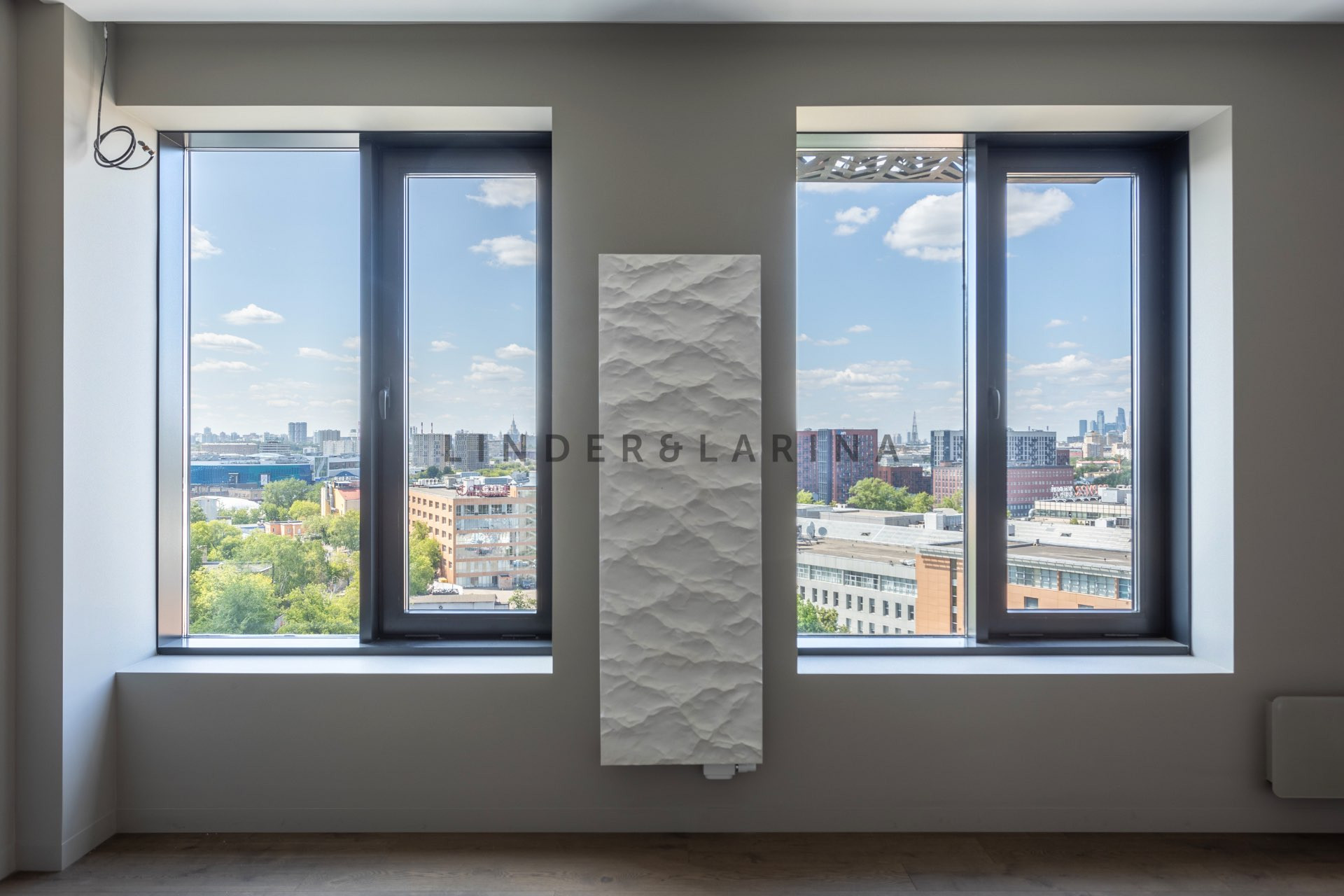 В квартире выполнен качественный дорогостоящий ремонт в современном минималистичном стиле, в отделке использовались лучшие материалы, готовы передать утвержденный дизайн проект. Планом предполагается зона спальни, отделенная стеклянной перегородкой, имеющая вместительную (6 кв.м.) гардеробную комнату, и просторную кухню-гостиную. При входе также спроектирована зона хранения, сан. узел совмещенный. Высокие (3,3 м.) потолки и окна (2,1 м.) наполняют пространство естественным светом. Безусловным плюсом квартиры является панорамный вид на город, есть возможность наблюдать р. Москву, Сити, Университет, Храм Христа Спасителя и др.