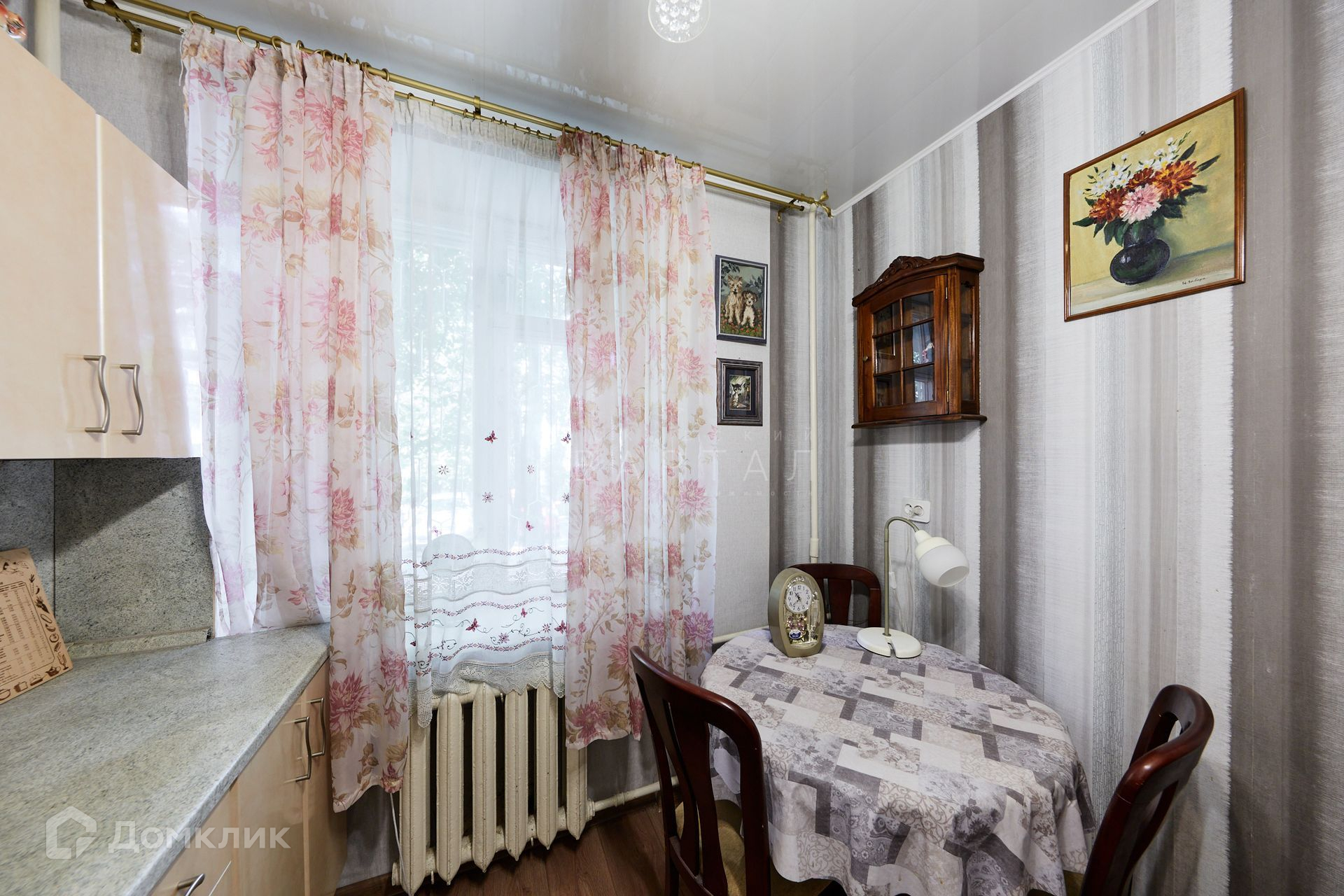 Высокий первый этаж , ниже распложена городская библиотека. Кухня квадратной формы с встроенной мебелью, гостиная в классическом стиле, комфортная спальня, кладовая, оборудованная под зону хранения, добротная входная дверь.