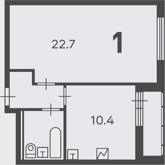 Жилая площадь 22.4 м2
