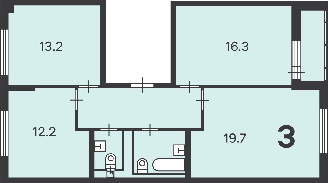 Жилая площадь 61.1 м2