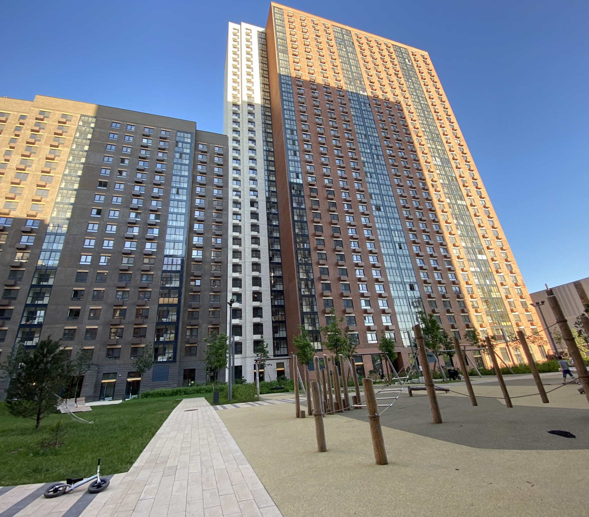 Новостройка комфорт-класса с подземным паркингом.Охраняемая под видеонаблюдением территория. Внутренняя территория свободна от машин - дворы-парки. Во дворах современные игровые и спортивные площадки. Высажены деревья, кустарники , цветы, установлены скамейки для отдыха, проложены тротуары для прогулок.