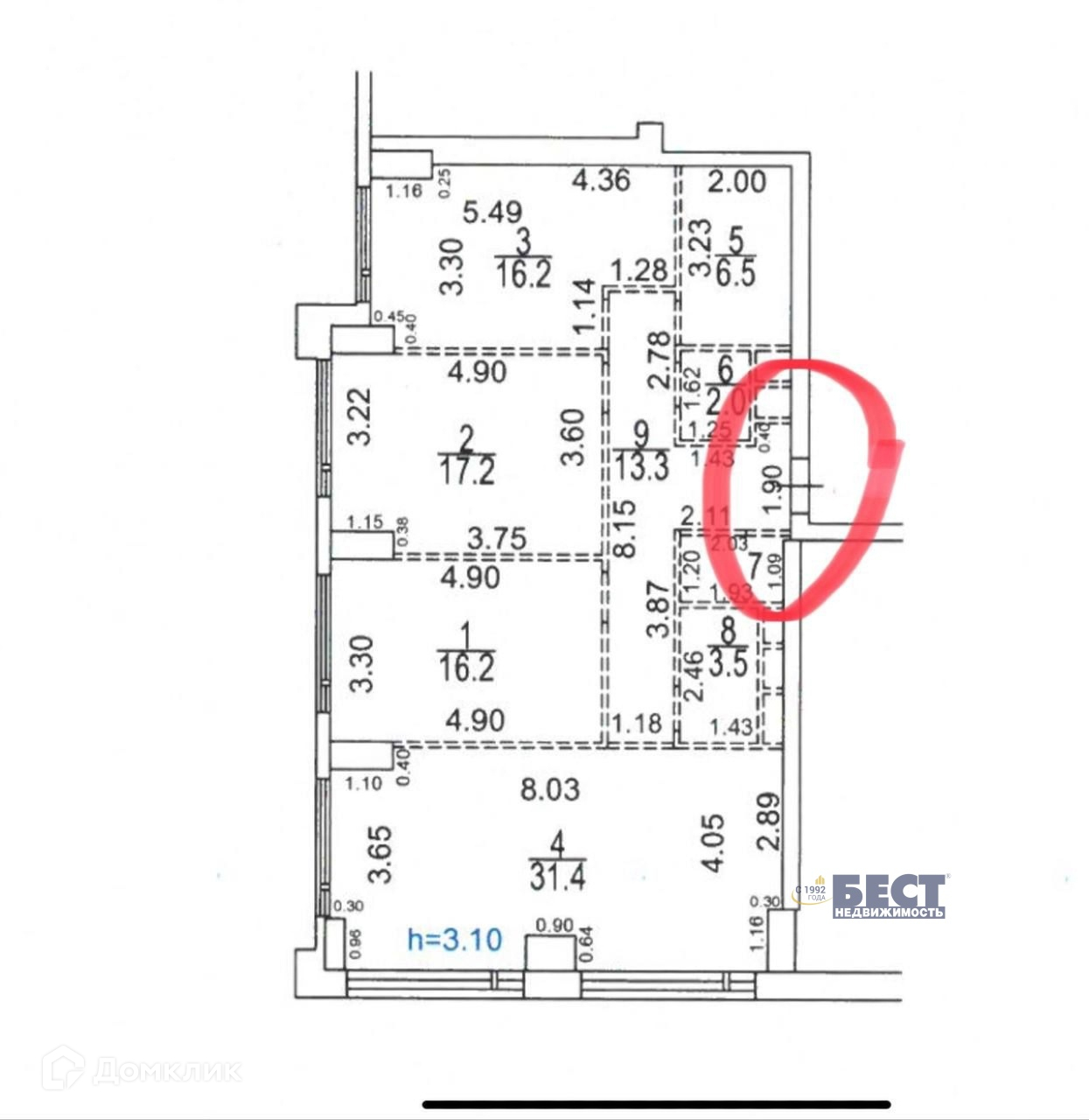 Площадь кухни 31.4 м2