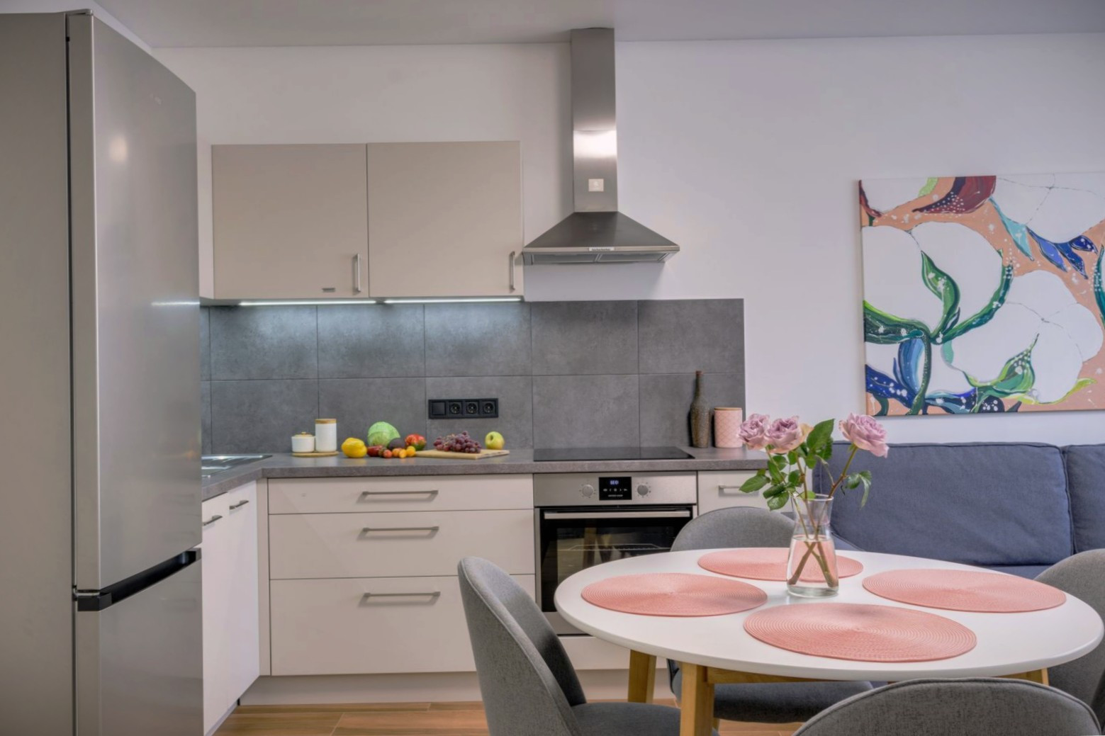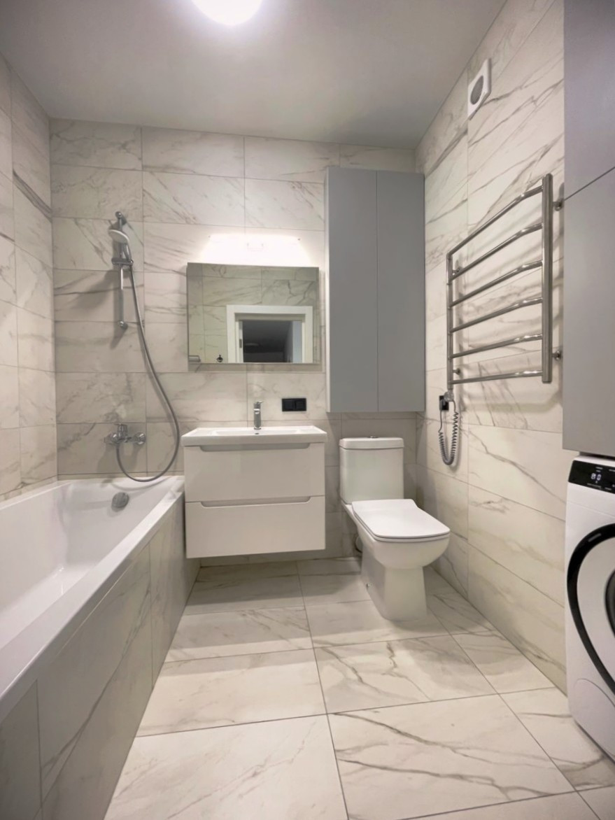 Вся сантехника вместе с трубами в ванной комнате новые (итальянская плитка, хорошие смесители soft-touch). На кухне установлен стильный кухонный гарнитур. На кухне и в коридоре на полу плитка, в комнатах ламинат. На стенах в коридоре и на одной стене на кухне - декоративная штукатурка, выполненная в одном стиле.