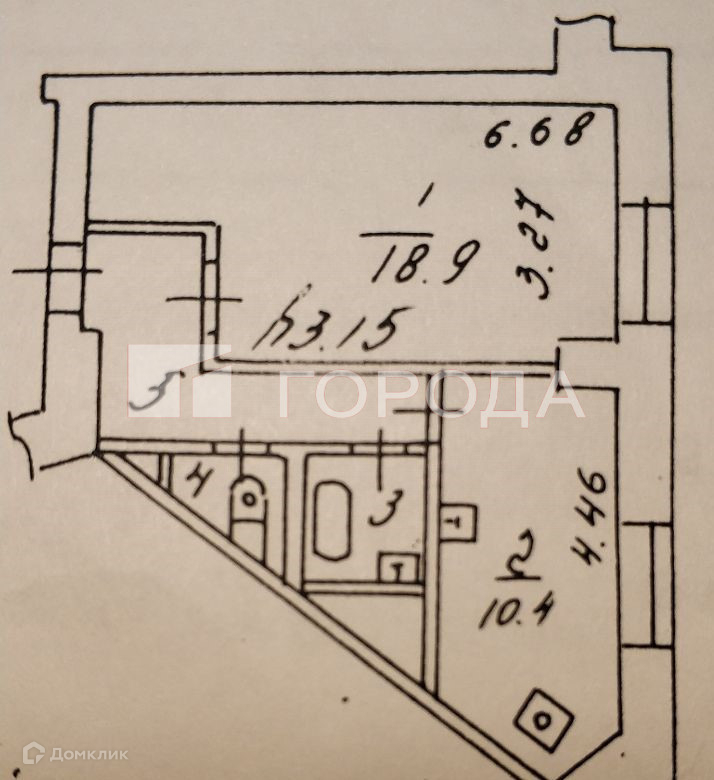 Жилая площадь 18.9 м2
