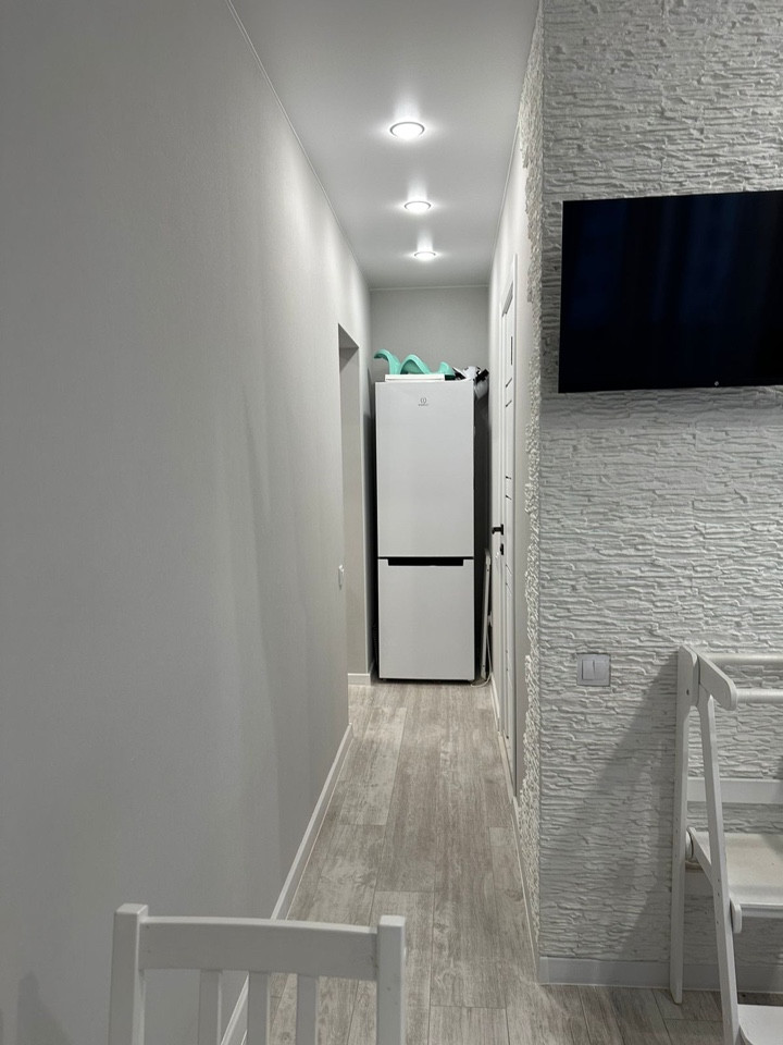 Комфортная кухня 8,1 м2 с выходом на остекленную лоджию. Просторная жилая комната 19,9 м2. В квартире есть вместительная гардеробная с полками и комодом. Окна выходят на внешний двор.