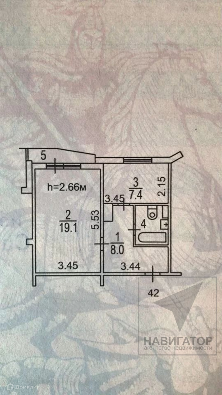 Жилая площадь 19.1 м2