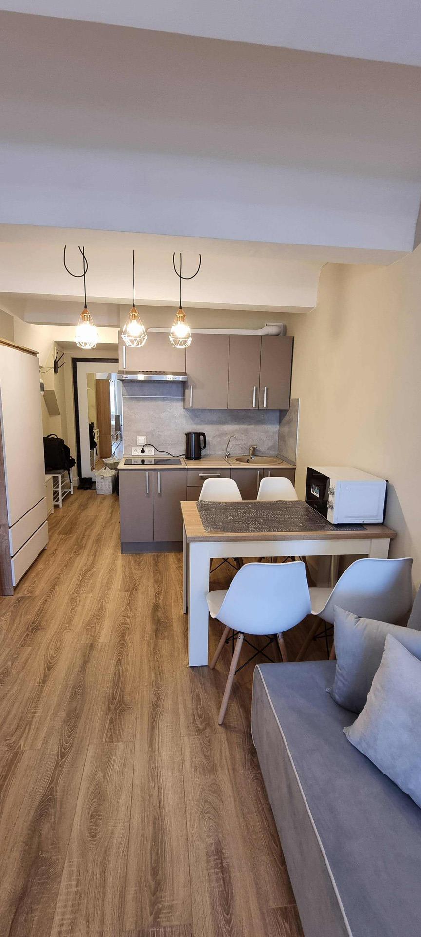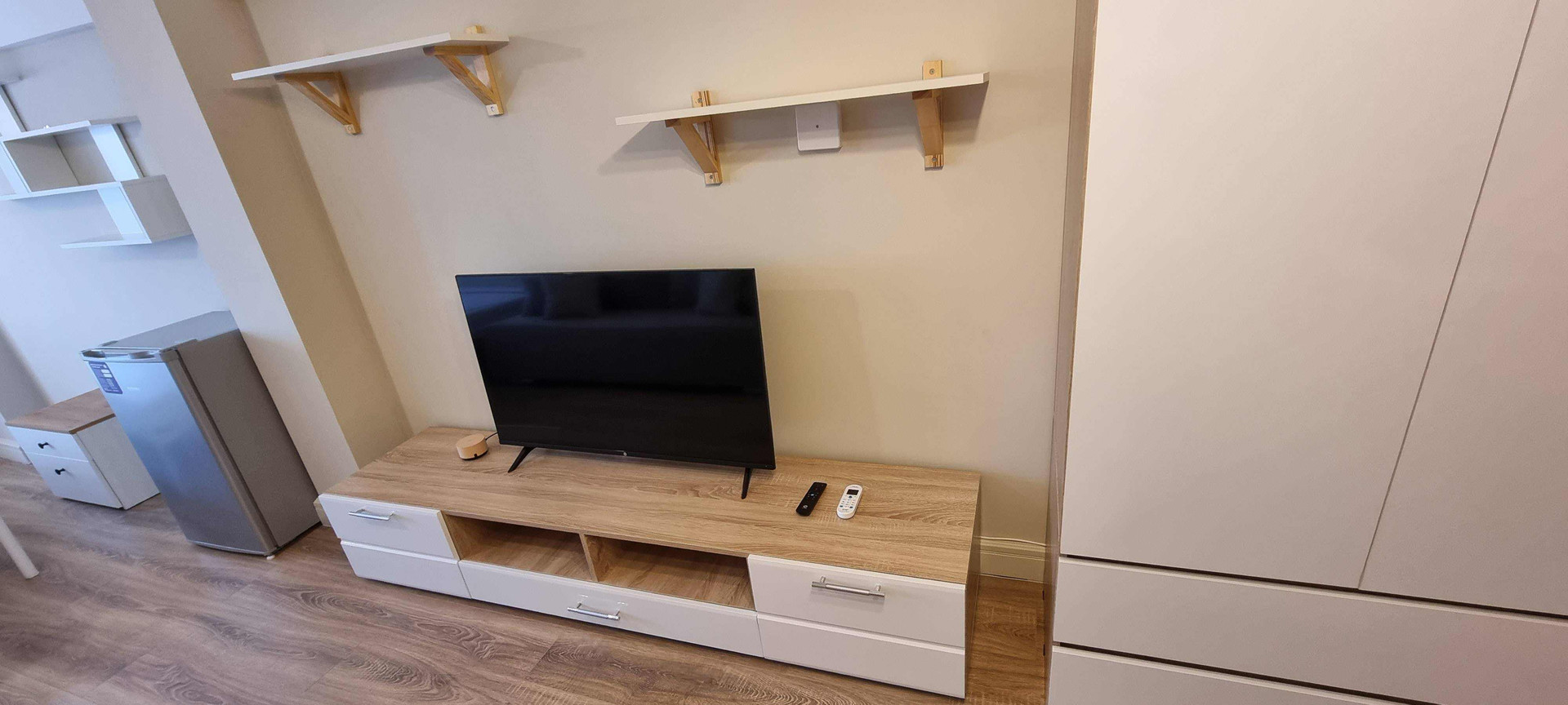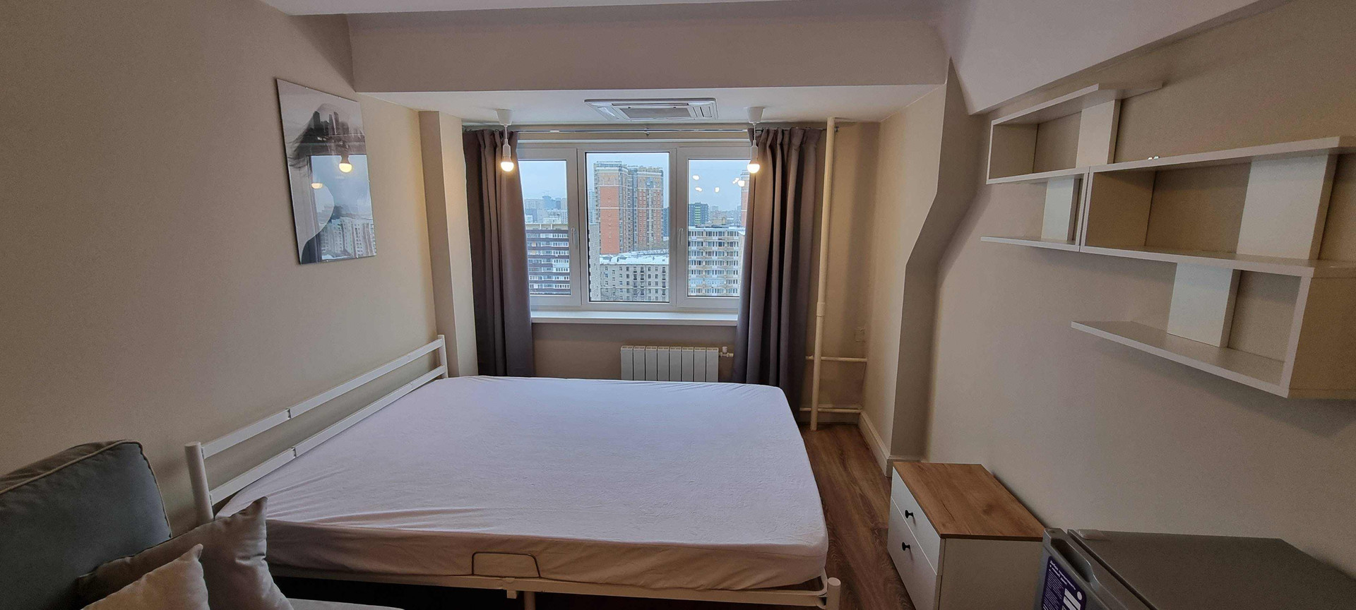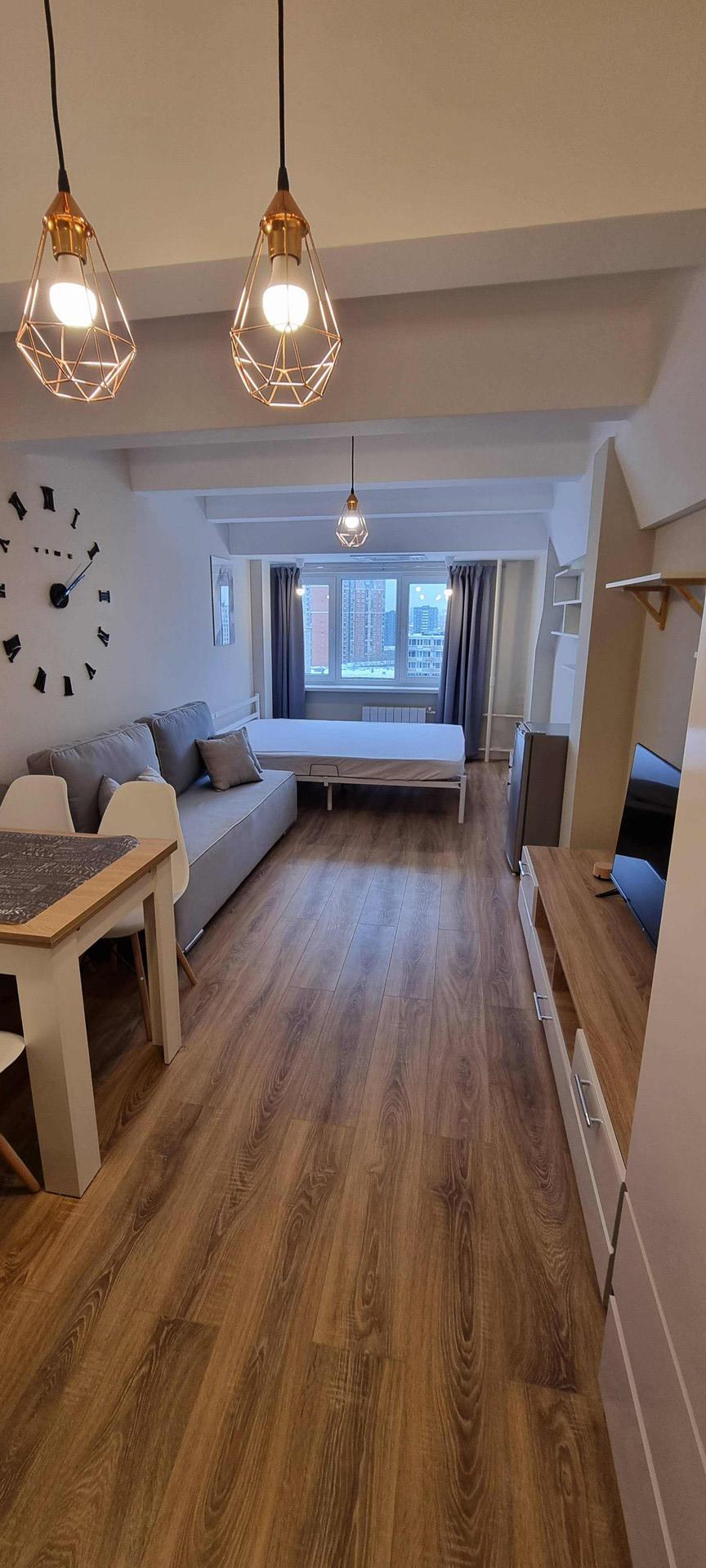 Новая техника: электроплита, вытяжка с подсветкой, холодильник, СВЧ-печь, чайник, телевизор, Яндекс Станция (управление освещением и музыкой), Wi-Fi роутер