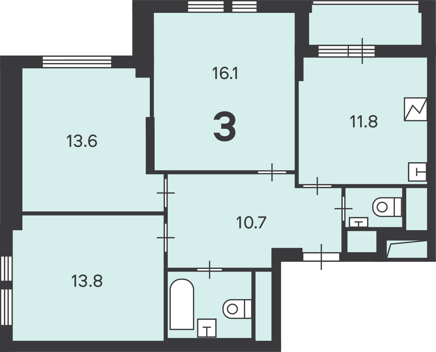 Количество комнат 3