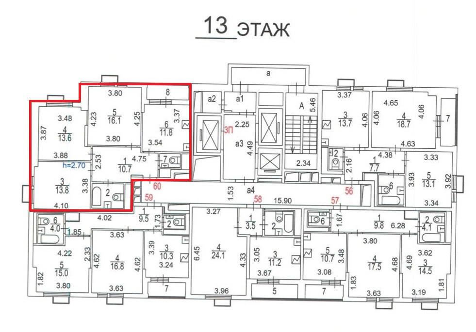 Высота потолков 2.7 м