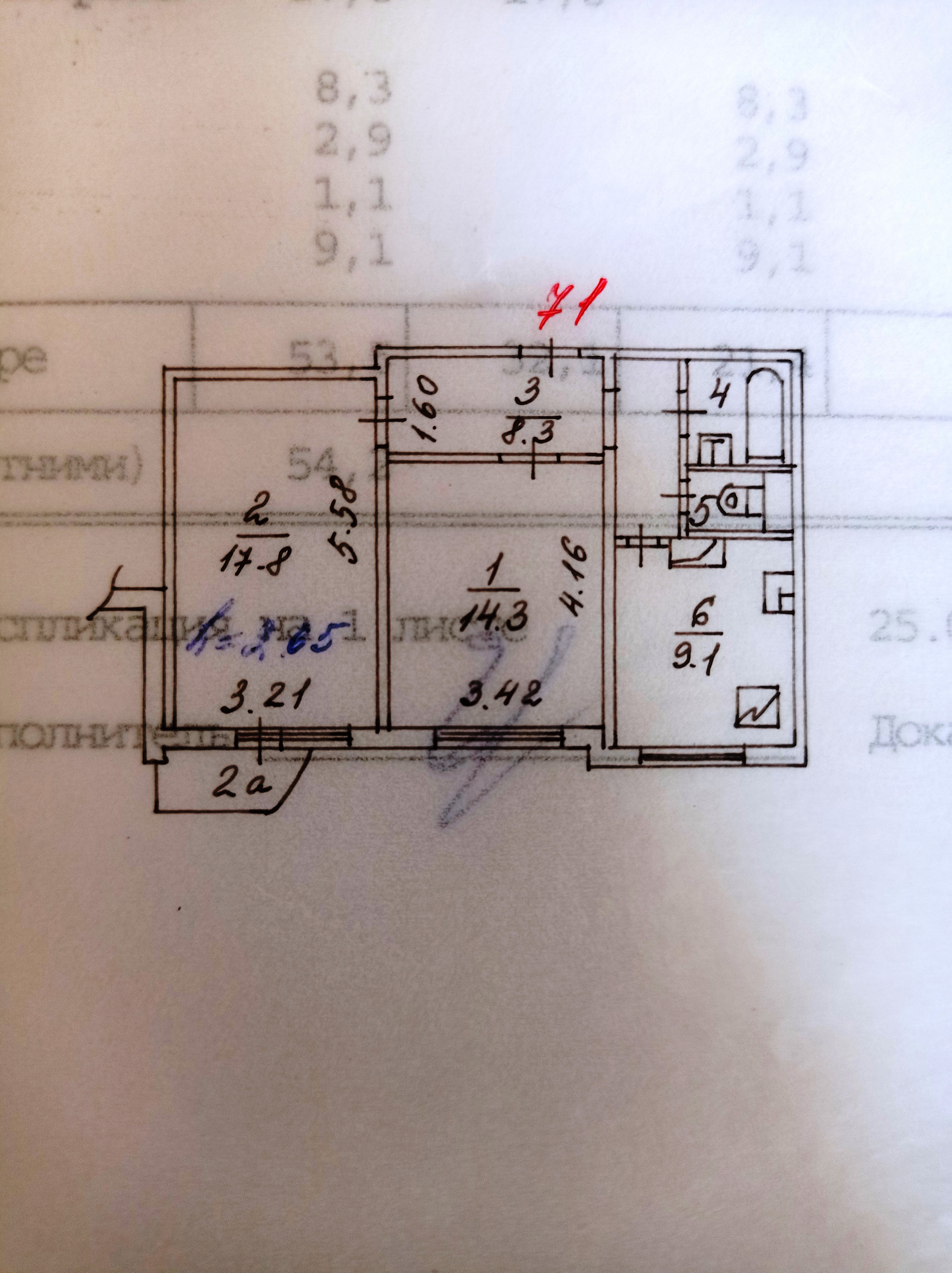 Общая площадь 53.5 м2