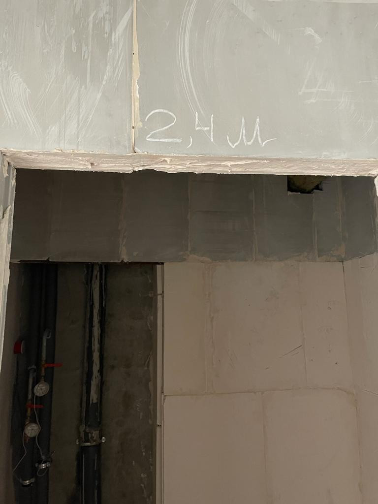 Кухня, гостиная и прилегающий коридор разделены ненесущими стенами.