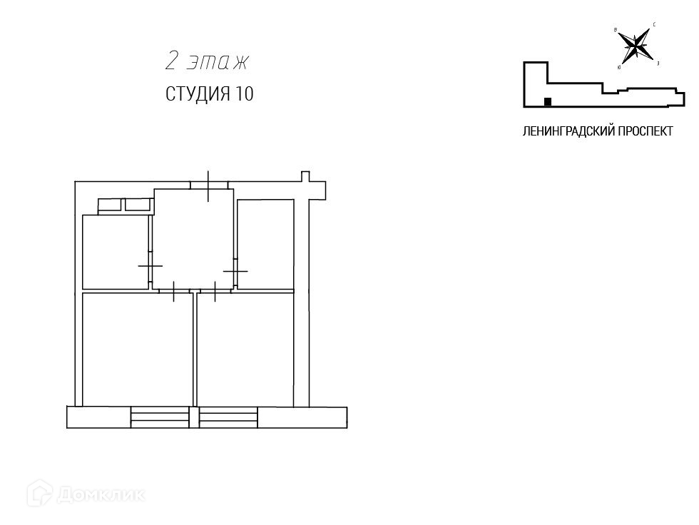 Квартира студия, 29.5 м2, этаж 2 / 4, на продажу в Москве, Ленинградский проспект, 47с2