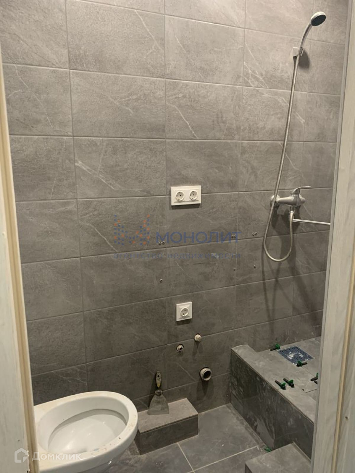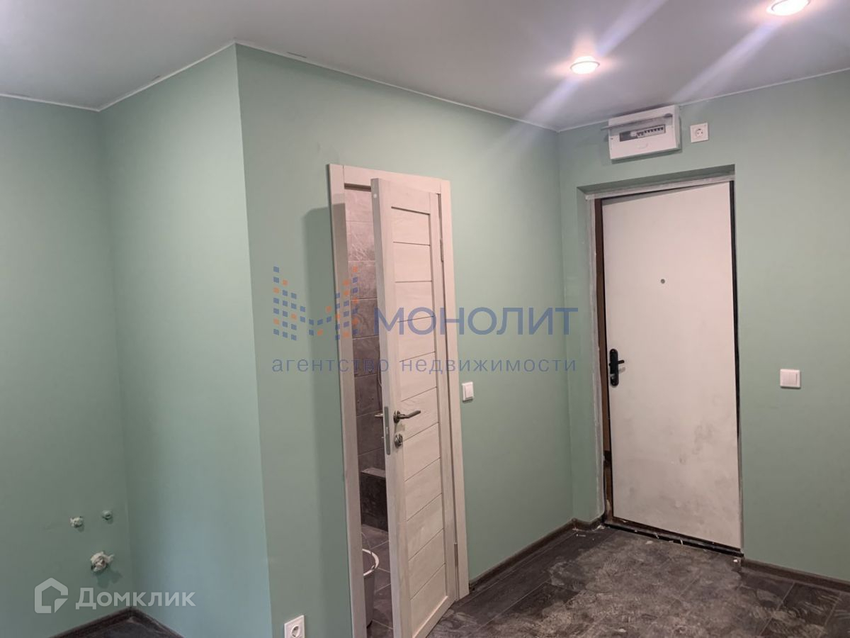 В студии выполнена отделка: штукатурка на стенах, на полу ламинат, в санузле керамогранит и кафель, натяжные потолки.