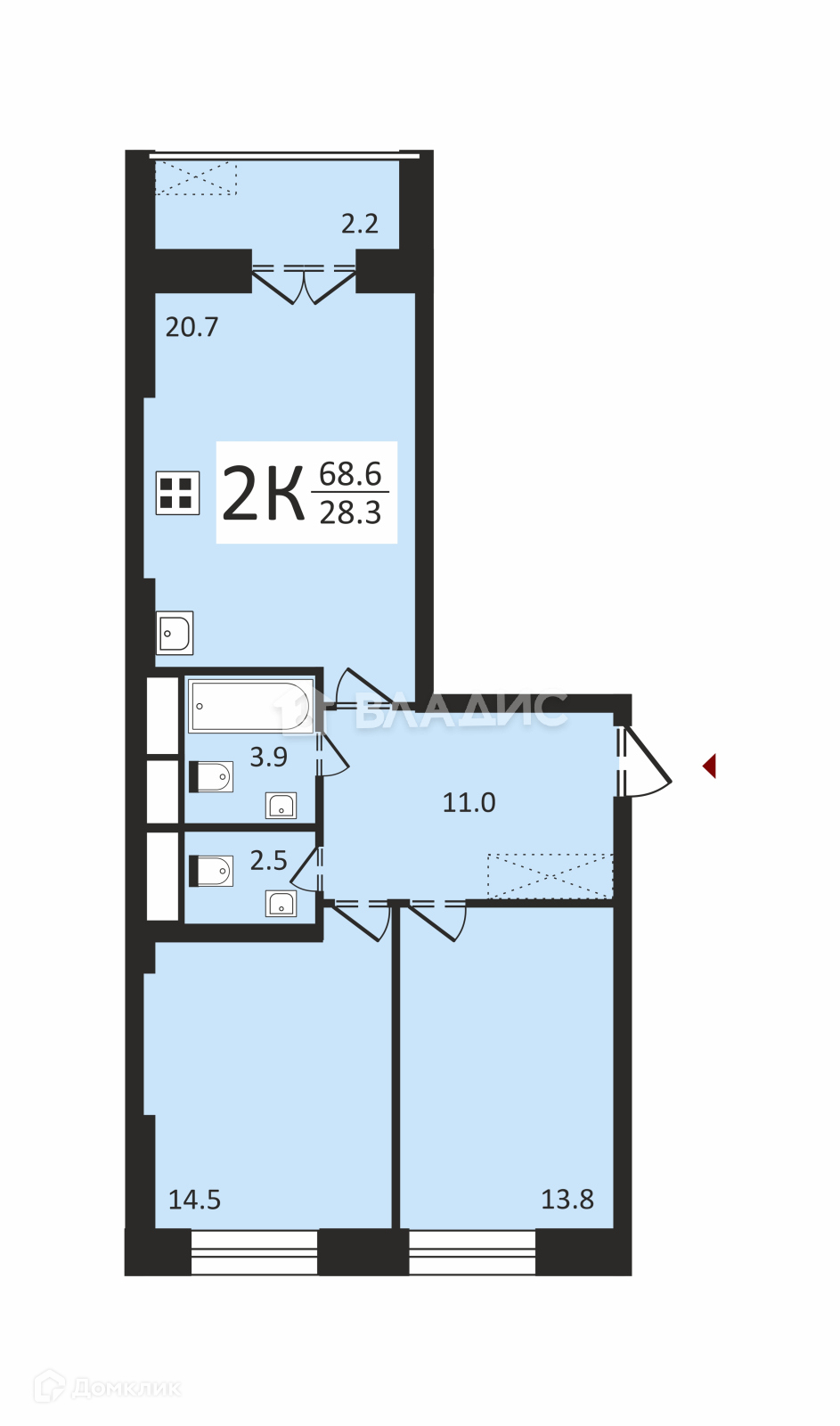 Общая площадь 68.6 м2