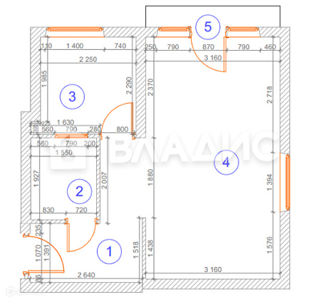 Квартира расположена на 5 этаже 5-ти этажного дома.