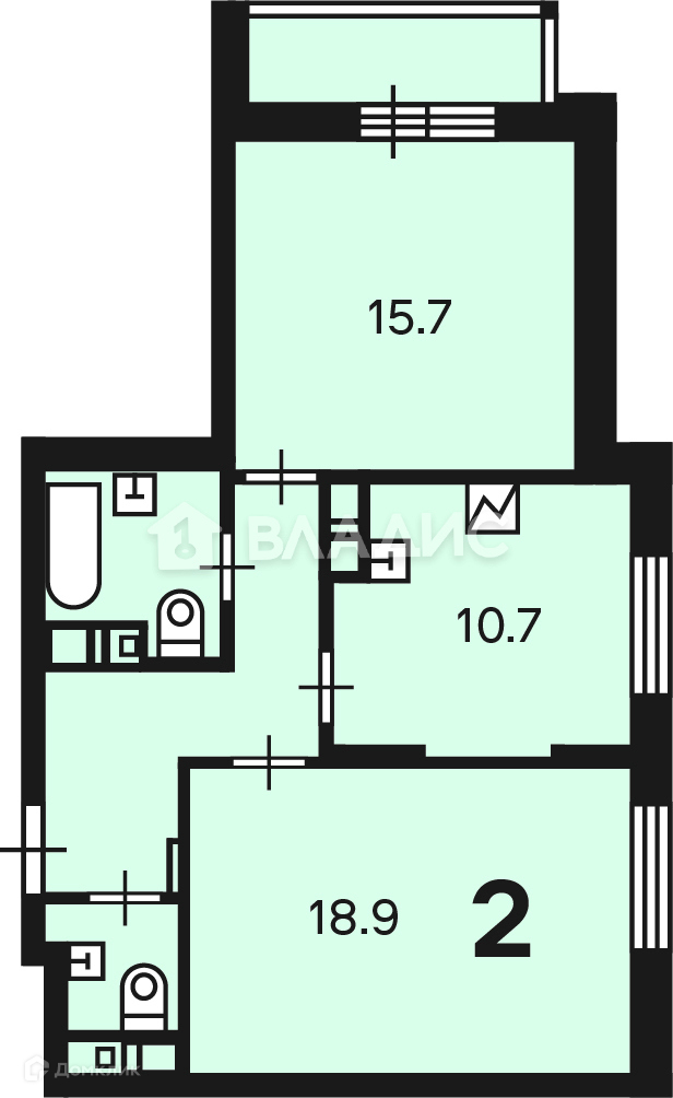 Количество комнат 2