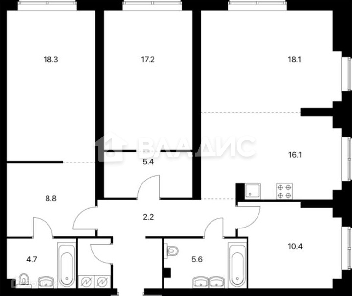 Общая площадь 116.9 м2
