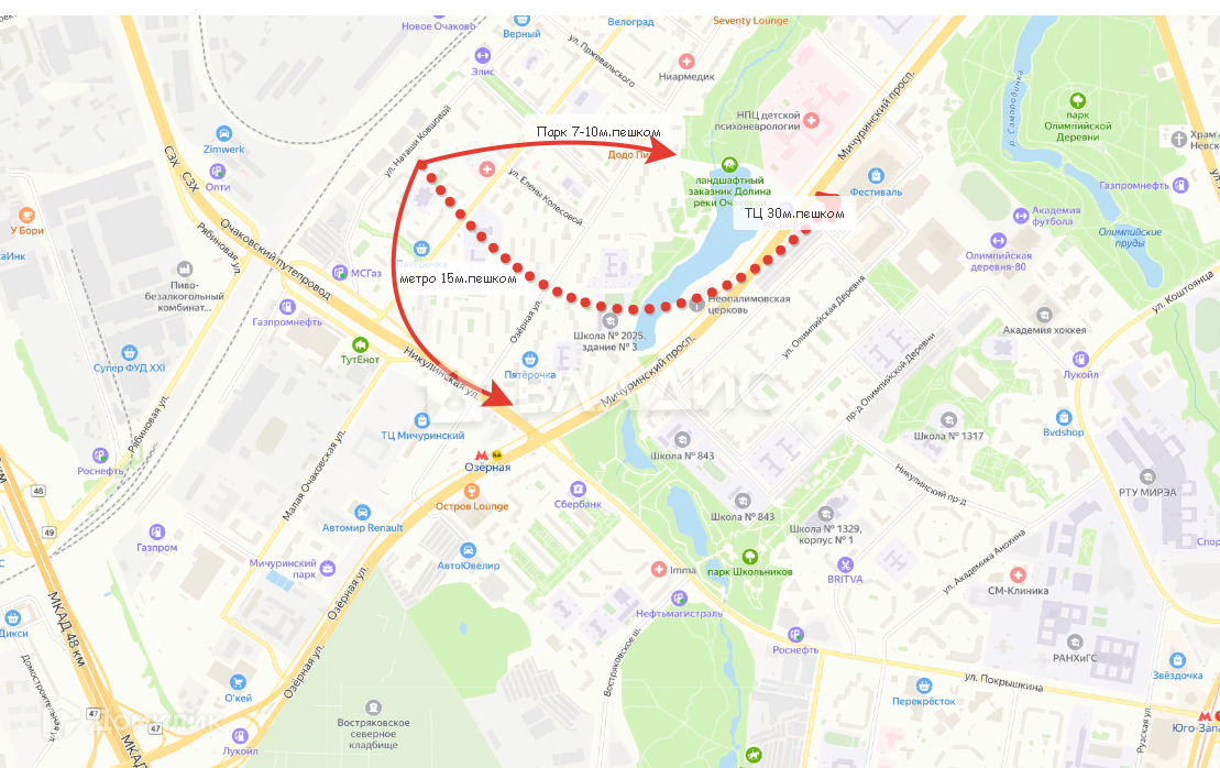 Престижный район на западе Москвы, район Очаково-Матвеевское, в пешей доступности - м. Озёрная и ст. Очаково (осенью МЦД-4) .