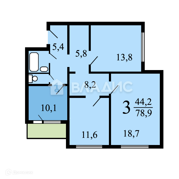 Общая площадь 78.9 м2