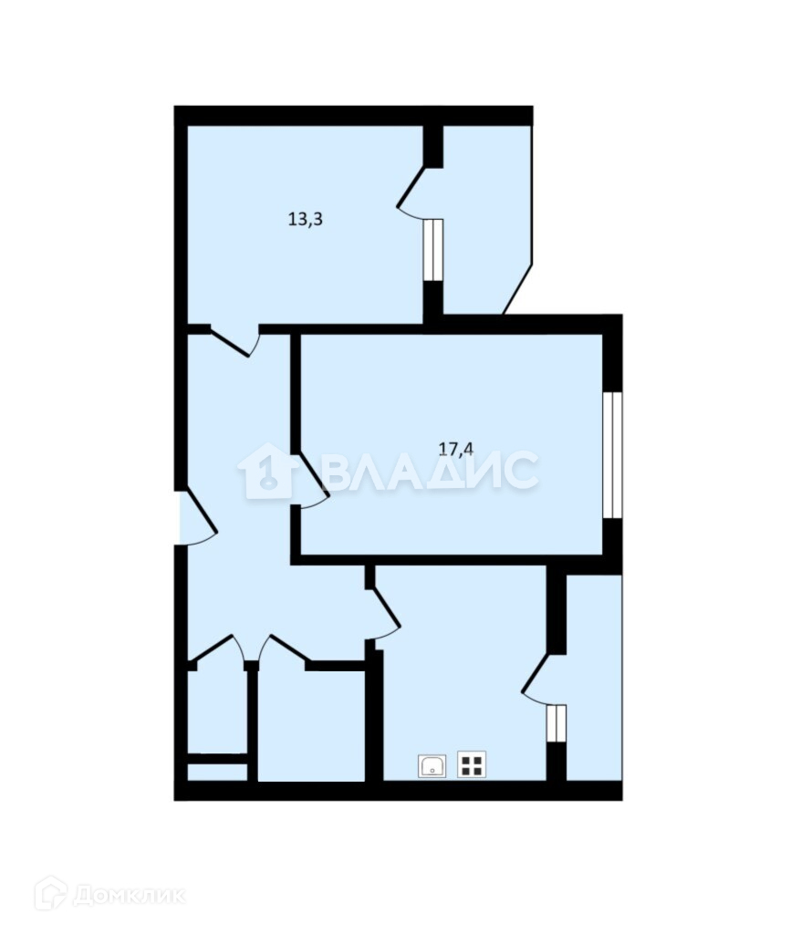 Кухня 10 кв.м., комнаты 32 кв.м.